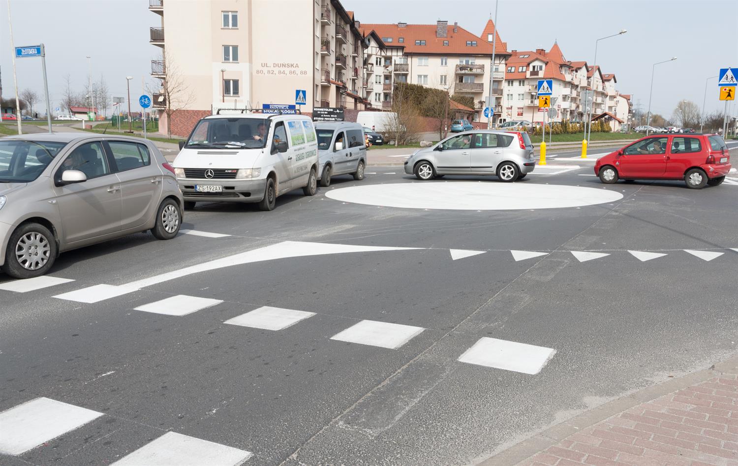 Mini-rondo na razie jest tylko namalowaną na jezdni wyspą najazdową, oznaczoną dodatkowo punktami odblaskowymi. Zamalowany też został środkowy pas jezdni ul. Duńskiej prowadzącej w kierunku centrum. Te zmiany powinny wymusić na kierowcach zmniejszenie prędkości.