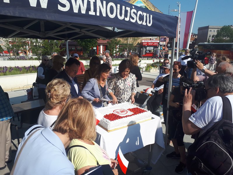 Na placu Wolności zebrali się przedstawiciele partii rządzących Świnoujściem i mieszkańcy. Zabrakło niektórych samorządowców, co zaskoczyło obserwatorów wydarzenia. Dziwić mogła także niewielka frekwencja mieszkańców. Zastanawiano się czy miała na to wpływ słaba promocja wydarzenia, pora (środek tygodnia), czy może świnoujścianie niespecjalnie interesują się świętowaniem czerwcowych wyborów.
