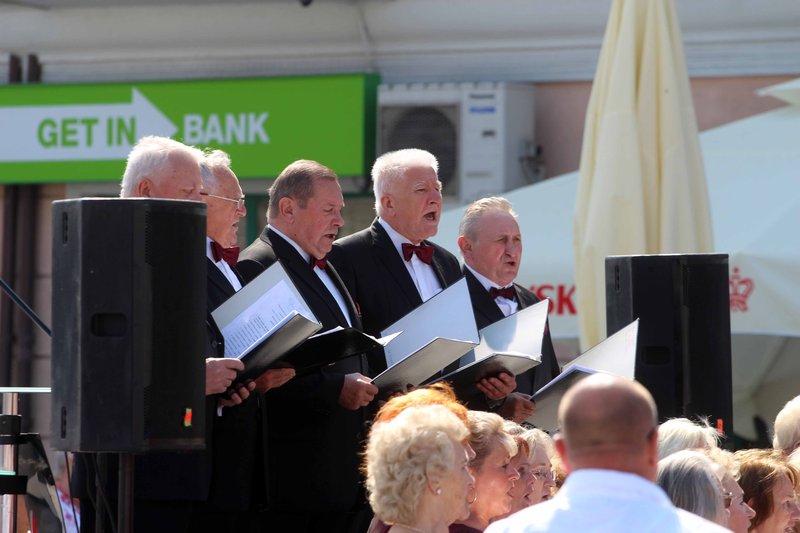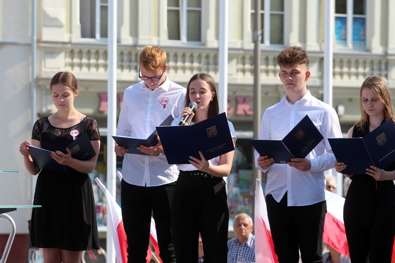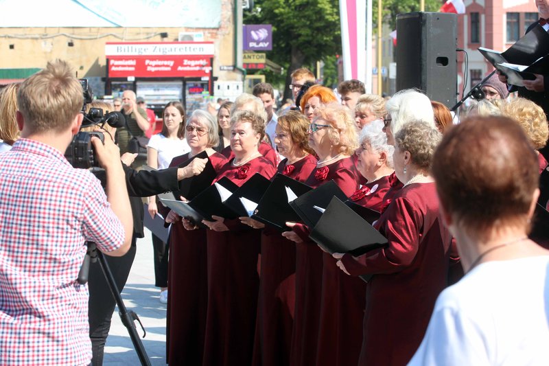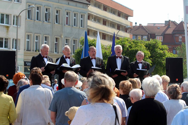 Na zdjęciach: Chór Kantylena zaśpiewał wspólnie z zebranymi hymn. Była też krótka prezentacja przygotowana przez uczniów świnoujskich szkół. Na koniec oficjele pokroili wielki tort.