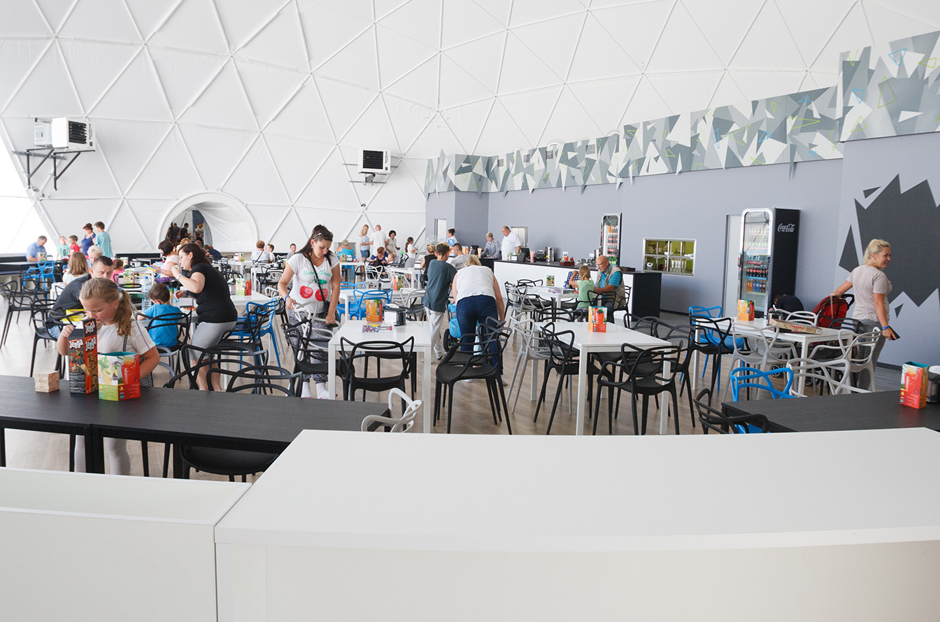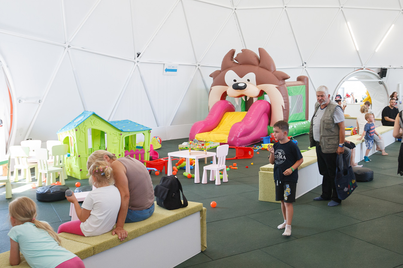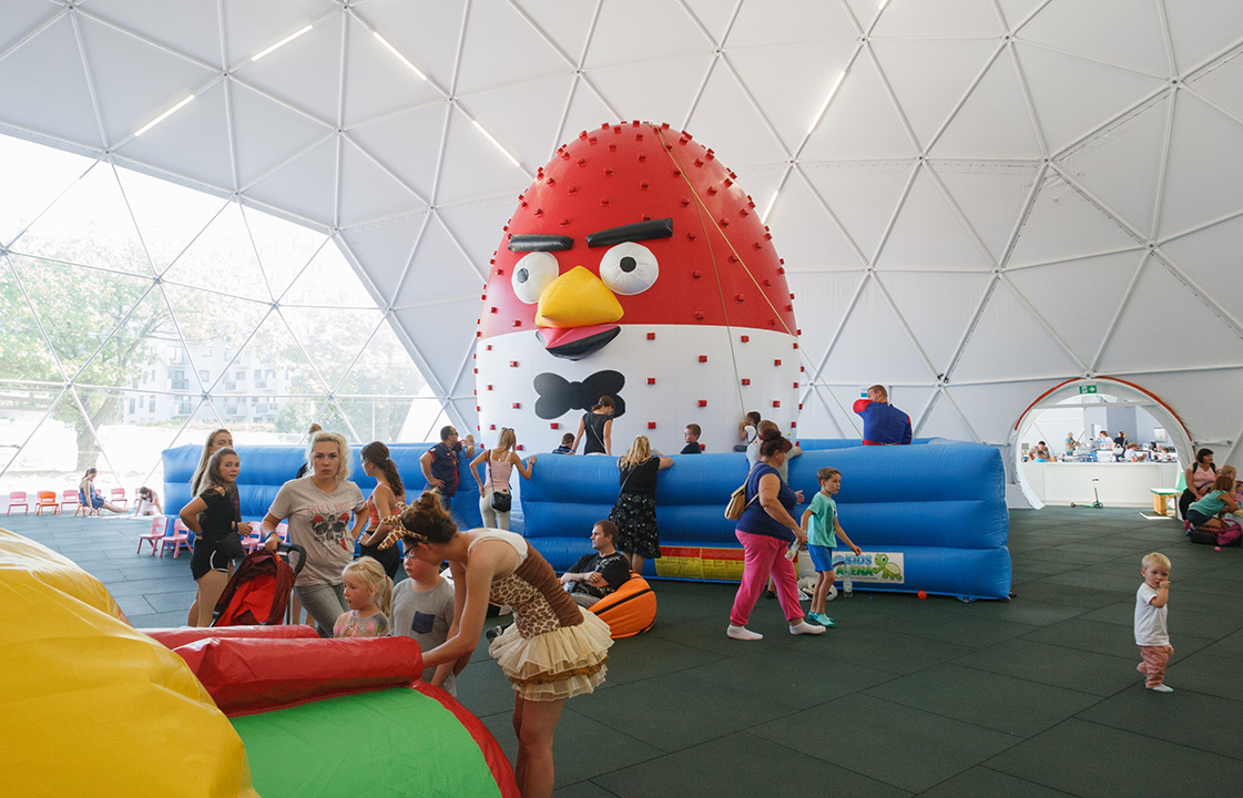 Jedną z najbardziej efektownych propozycji jest kino sferyczne. Na dzieci czeka też ośmiometrowy Angry Birds, który jest jednocześnie wielką ścianą wspinaczkową.