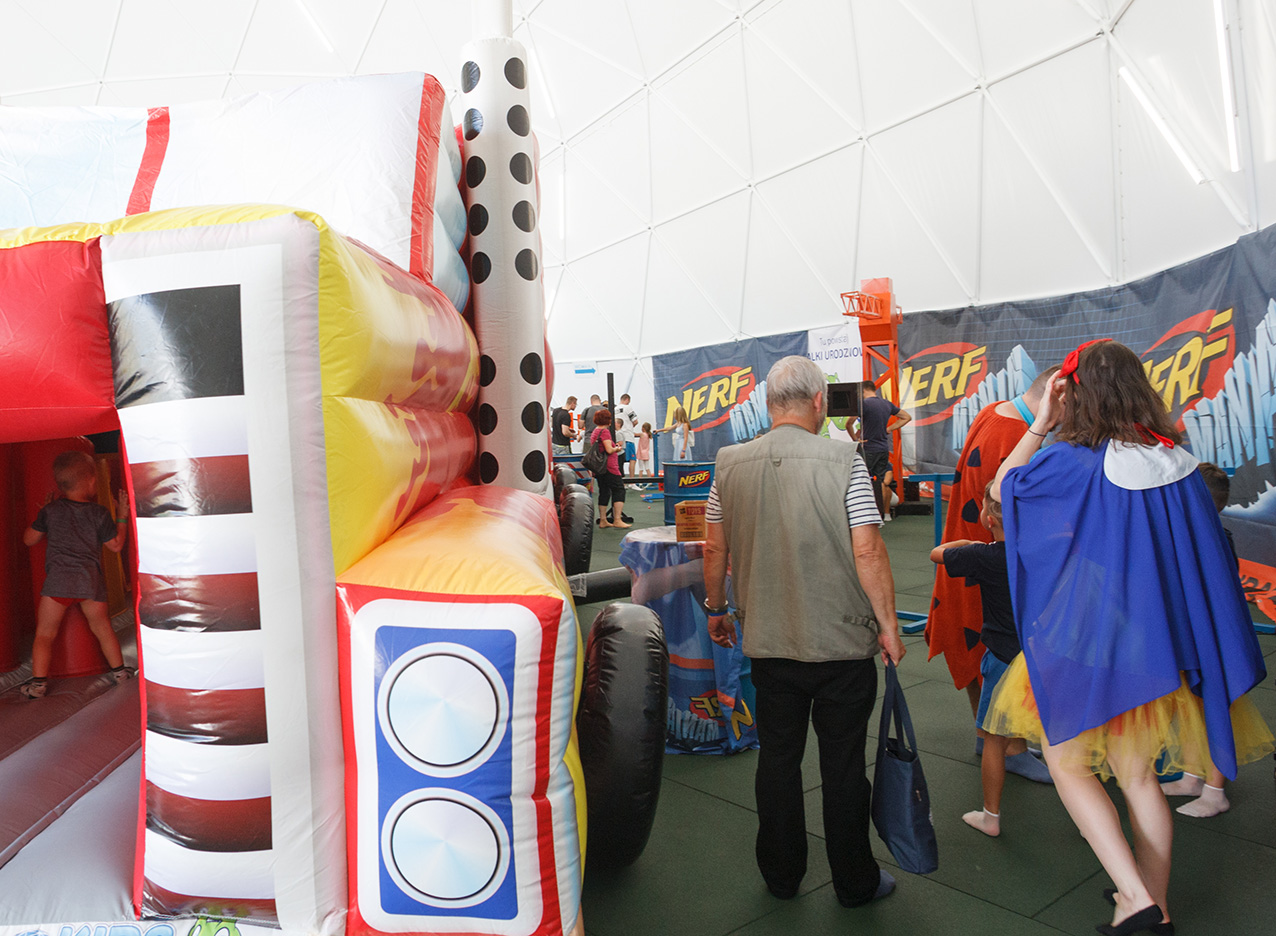 - Namioty powstały przy Manhattanie ze względu na to, że jest tu idealna komunikacja dla wszystkich, tych z autami i tych bez aut - opowiada Dariusz Majcher, współwłaściciel Kids Areny - Dzieciaki mogą spędzić tutaj cały dzień, przygotowaliśmy ogromną liczbę atrakcji, kolejne będziemy otwierać do września, bo nie wszystkie do nas jeszcze dojechały. Mamy jedenastu animatorów, którzy są cały czas na sali, nie jest więc tak, że dziecko wchodzi, jest samo z rodzicami i nie wie, co robić. Animatorzy są przy każdej atrakcji, pomagają w zabawie.