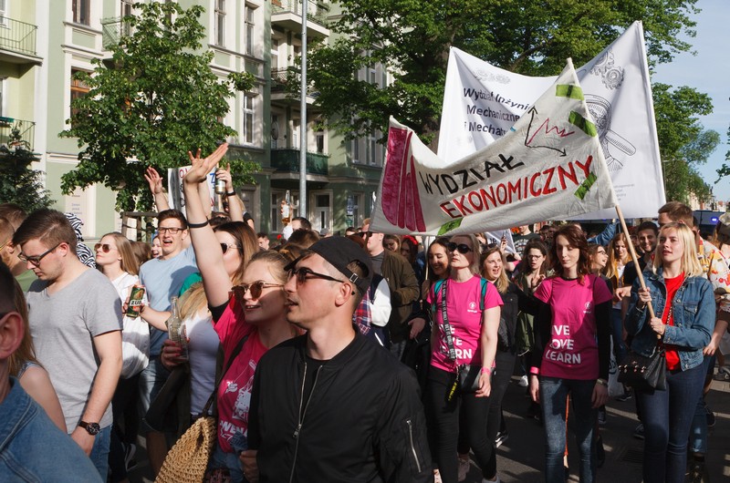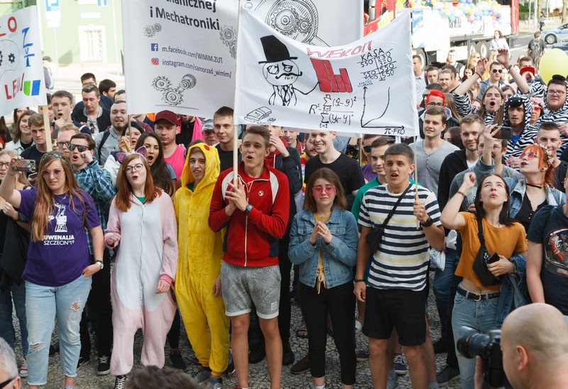 Studencka parada przeszła w czwartek ulicami Szczecina. Kolorowy marsz rozpoczął się sprzed akademika przy ul. Kordeckiego i przeszedł al. Bohaterów Warszawy, ul. 5 Lipca, Bolesława Śmiałego, Mieczysława Niedziałkowskiego oraz al. Papieża Jana Pawła II aż do magistratu, gdzie studenci odebrali symboliczne klucze od miasta i do niedzieli przejmą nad nim kontrolę.