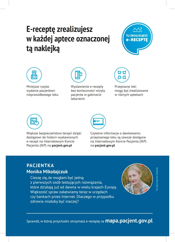 Wszystkie placówki służby zdrowia i wszyscy lekarze mają obowiązek do końca 2019 roku zalogować się w systemie e-zdrowie, by uzyskać uprawnienia do wystawiania elektronicznych recept. W 2018 roku przygotowały się do tego wszystkie apteki, dlatego e-receptę pacjent może zrealizować w każdej z nich, na ternie całego kraju.