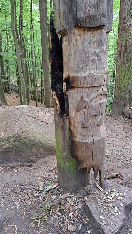 Ktoś podpalił drewniane posągi słowiańskich bogów na Wzgórzu Trzygława w Puszczy Bukowej. Fot. Zuzanna Gonera