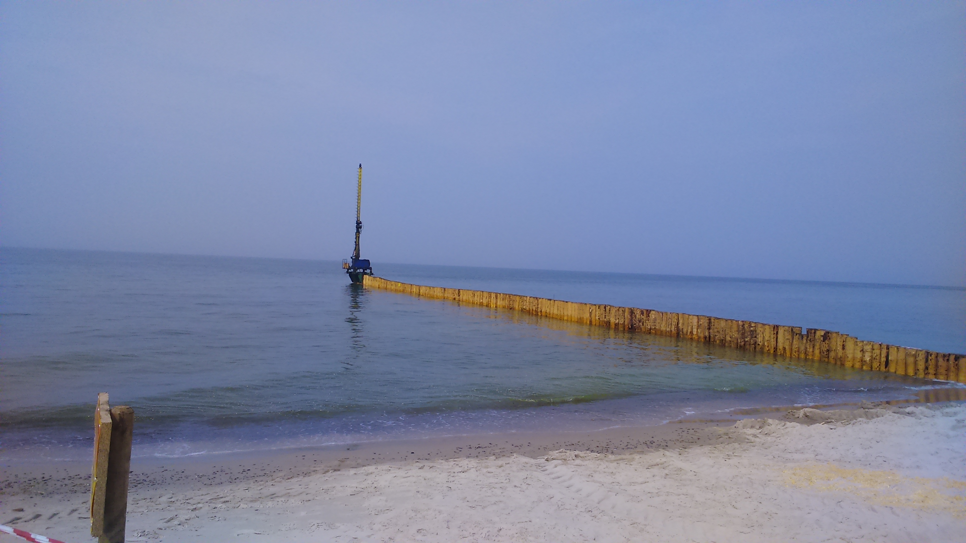 Roboty trwają w okolicach betonowego pirsu i prowadzone są w stronę wschodnią. Turyści przyglądający się pracy kafaru dostrzegli, że pracuje on nieco inaczej, gdyż nie jest umiejscowiony na jednostce pływającej, a przesuwa się w głąb morza po wbitych przez siebie palach. Nowe drewniane pale spowodują, że na plaży będzie więcej piasku. Przy okazji wyciągnięto z morza betonowe rozgwiazdy, które wrzucono do Bałtyku wiele lat temu. Prace mają zakończyć się przed rozpoczęciem wakacji.