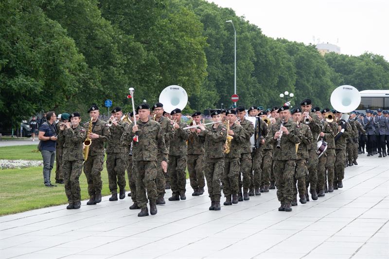 Kompania honorowa wojska i orkiestra wyglądają jak dziady w tym moro. Gdzie te czasy, że żołnierz wyfasowany szedł a spodnie wyprasowane w kant? Bida z nędzą teraz... I te pedalskie apaszki pod szyją. Kuźwa!!! Co za stylista to wymyślił?