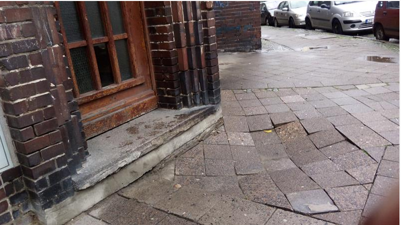 Dotąd dwoje mieszkańców kamienicy było unieruchomionych przez kilka miesięcy po upadku podczas wyjścia z klatki. Czy ten bilans musi się zwiększyć, by chodnik naprawiono jak należy?!