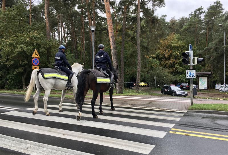Niby na koniu, a jednak po zebrze… Ów nietypowy obrazek miejski - mimo wszystko - jest jednak dość charakterystyczny dla szczecińskich terenów zielonych, które są w pieczy policyjnych patroli konnych.