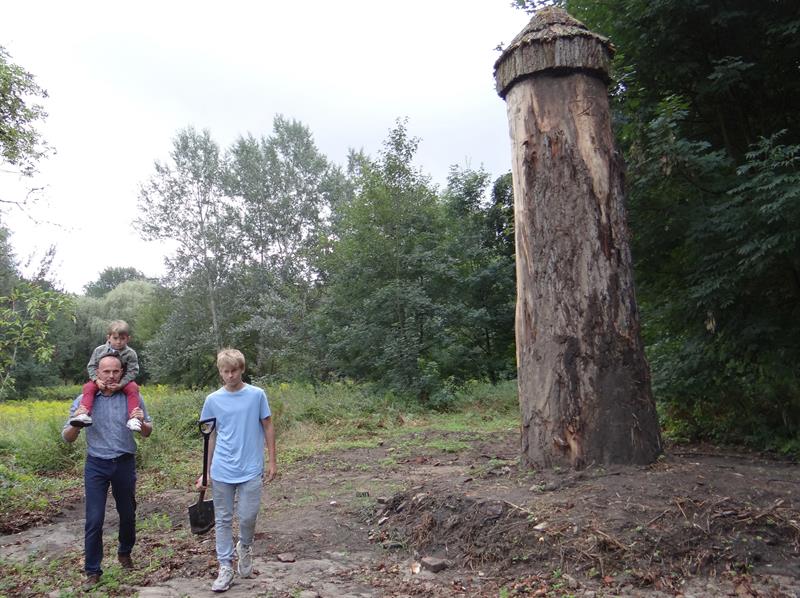 - Leżał 200 metrów od polany, na której posłuży pszczołom. Już jej przyciągnięcie w to miejsce było nie lada wyzwaniem. Zrealizowanym dzięki pomocy leśników i ich sprzętu - wspomina Zdzisław Baran. - Potem pień trzeba było ustawić w pionie, stabilnie zagłębiając w ziemi.
