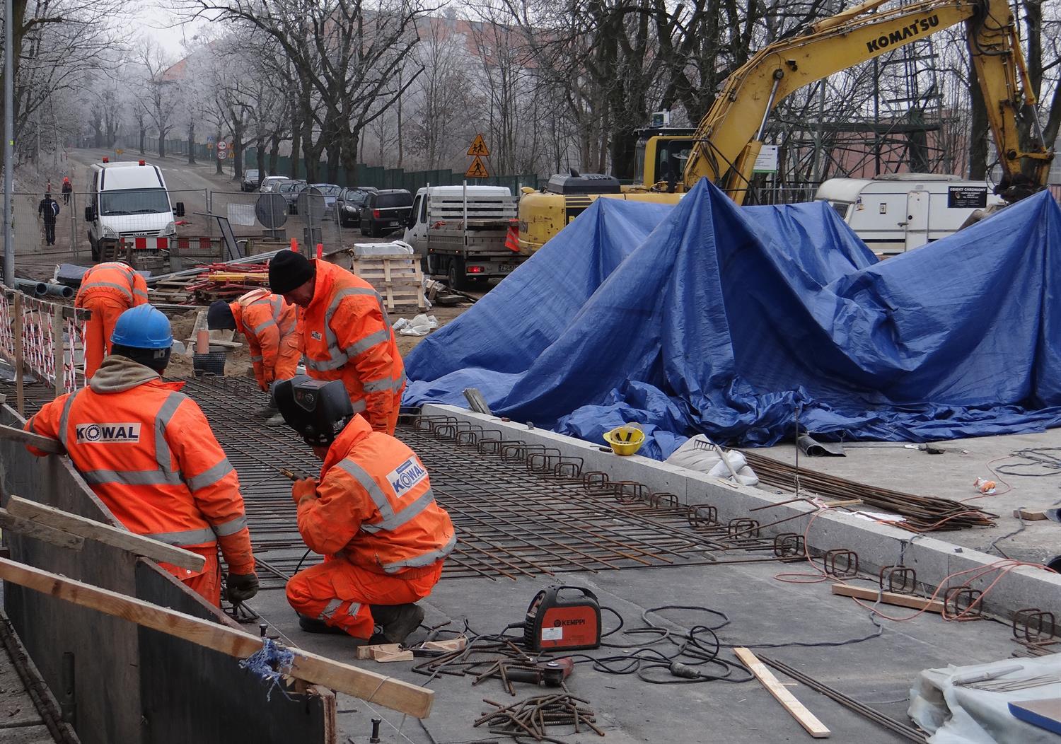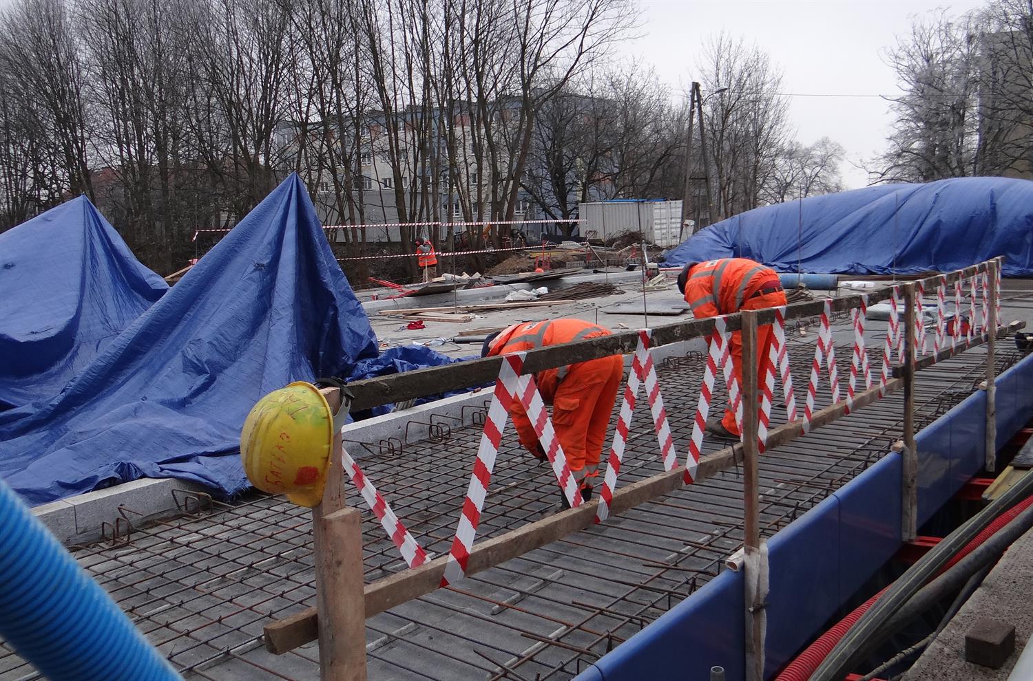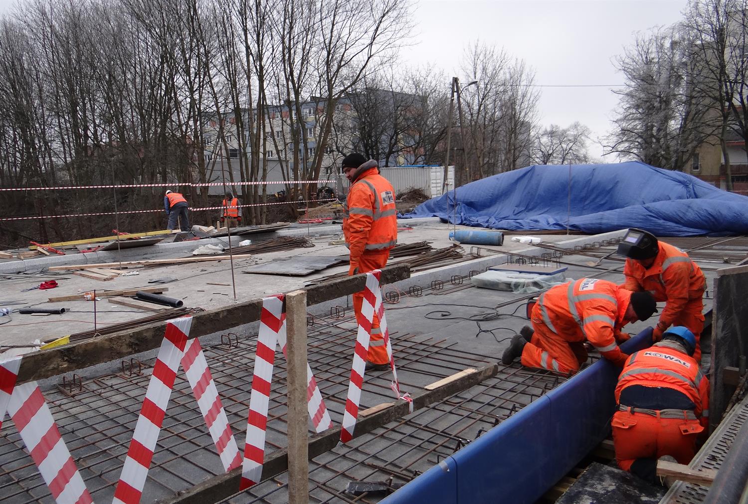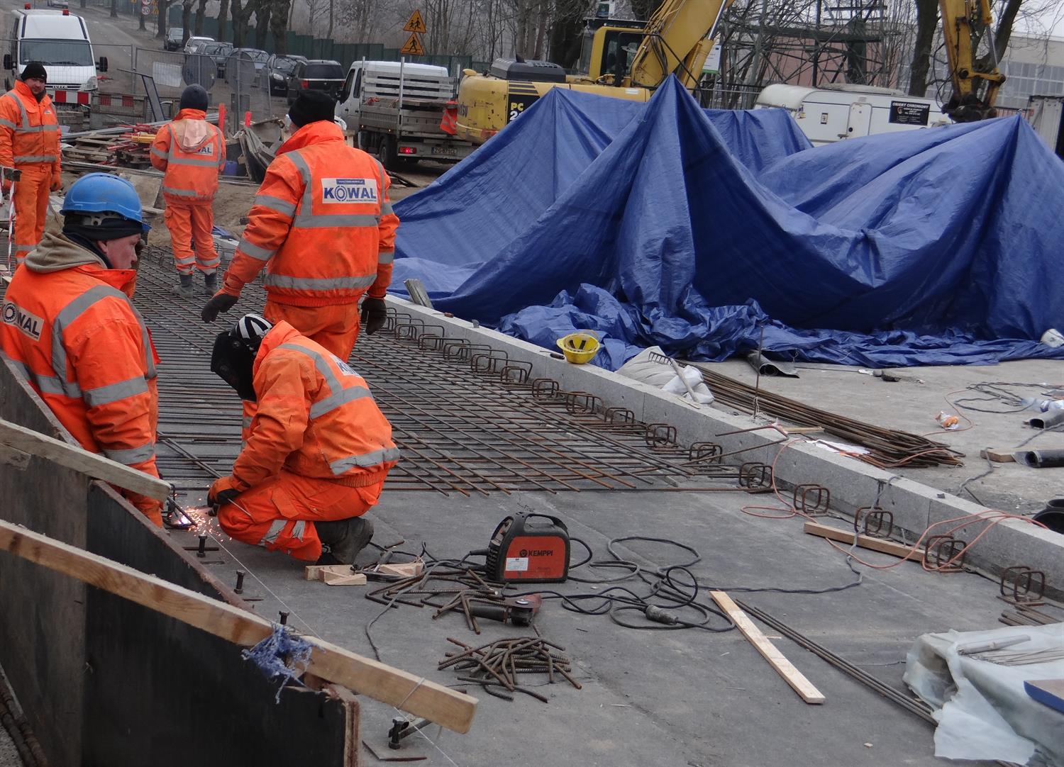 – Problemem są w szczególności ujemne temperatury, które uniemożliwiają zachowanie reżimów technologicznych. Prowadzenie robót budowlanych w okresie zimowym jest natomiast konsekwencją konieczności wprowadzenia zmian do projektu posadowienia fundamentów wiaduktu w związku ze zinwentaryzowaniem istniejących stalowych pali – dodała H. Pieczyńska. W tej chwili trwa montaż elementów wyposażenia. Roboty drogowe będą prowadzone przy lepszych warunkach atmosferycznych. ©℗