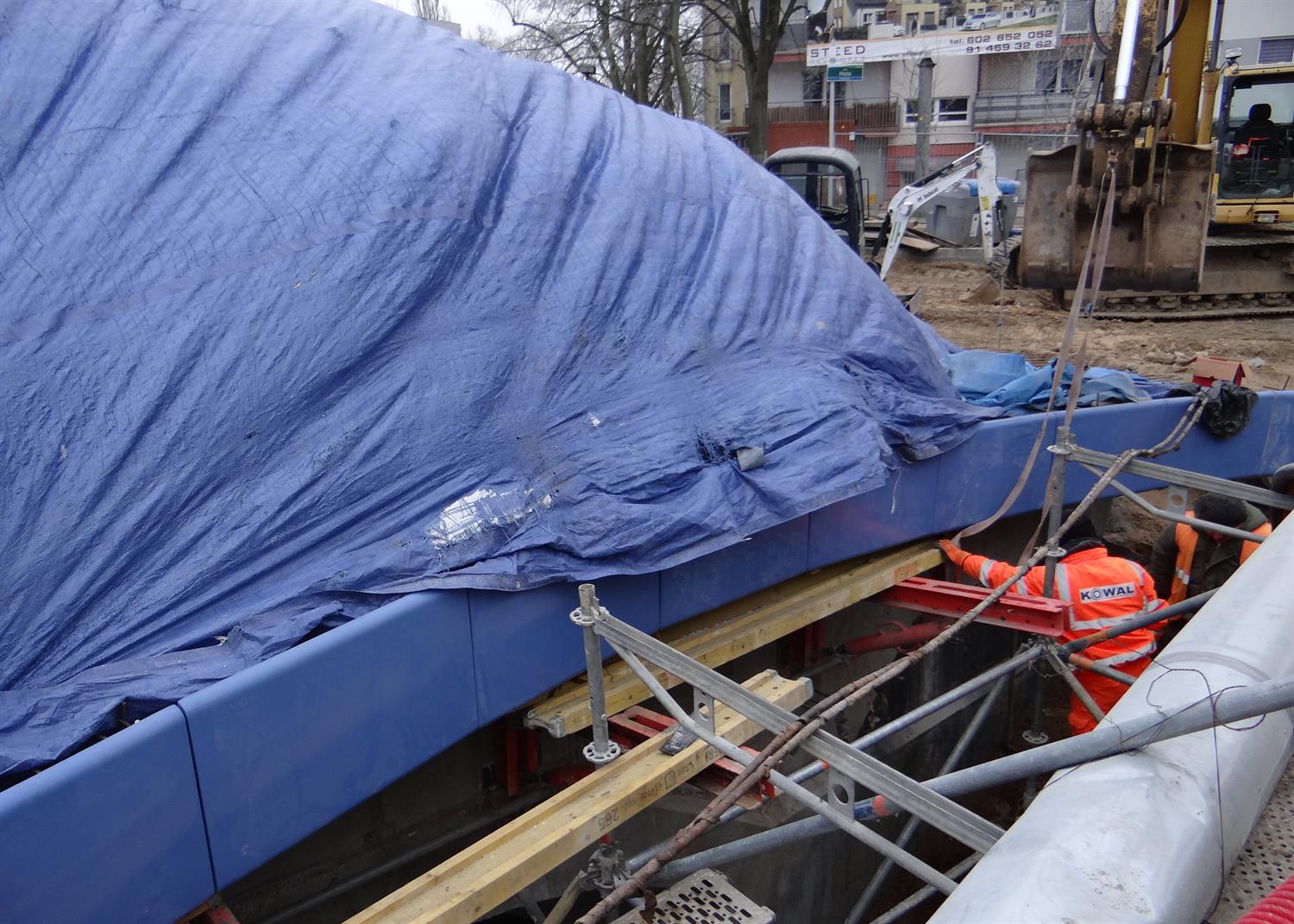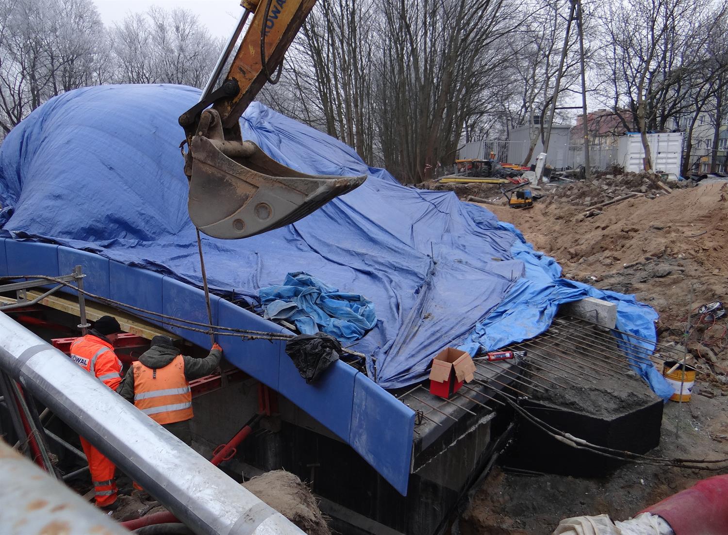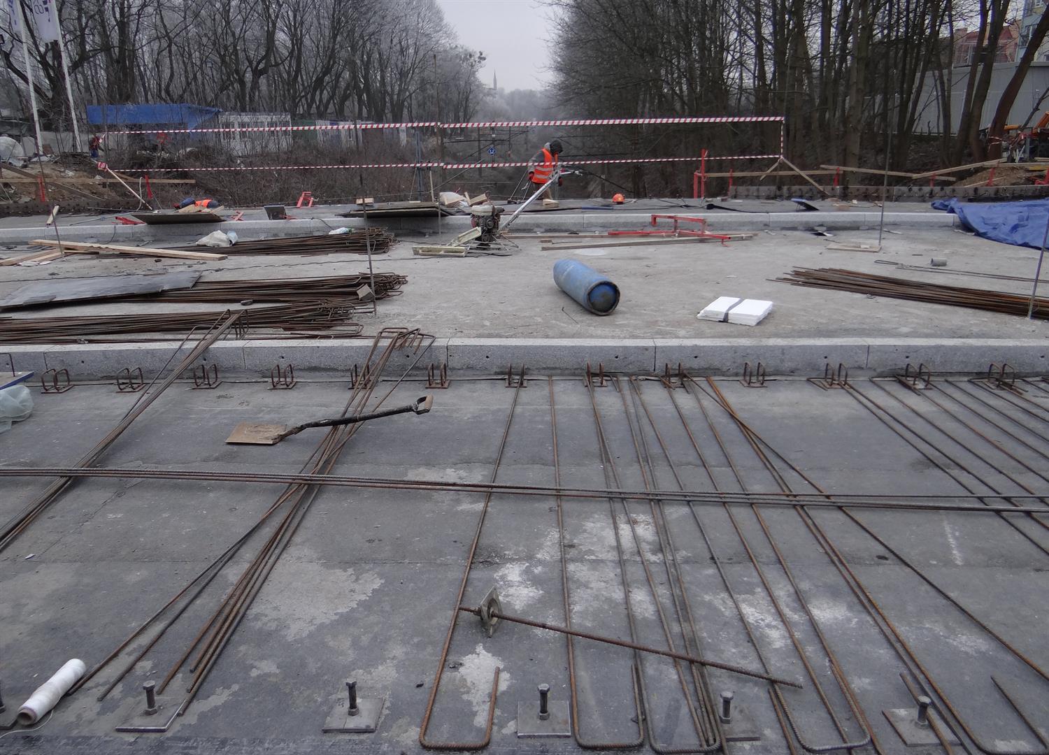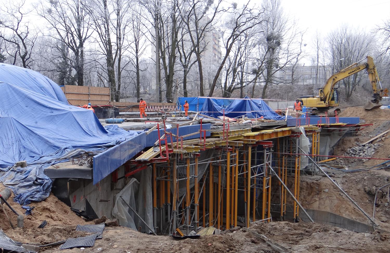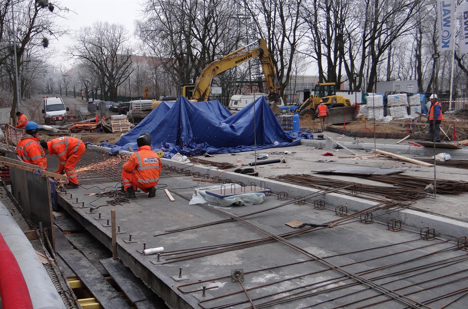 – Problemem są w szczególności ujemne temperatury, które uniemożliwiają zachowanie reżimów technologicznych. Prowadzenie robót budowlanych w okresie zimowym jest natomiast konsekwencją konieczności wprowadzenia zmian do projektu posadowienia fundamentów wiaduktu w związku ze zinwentaryzowaniem istniejących stalowych pali – dodała H. Pieczyńska. W tej chwili trwa montaż elementów wyposażenia. Roboty drogowe będą prowadzone przy lepszych warunkach atmosferycznych. ©℗