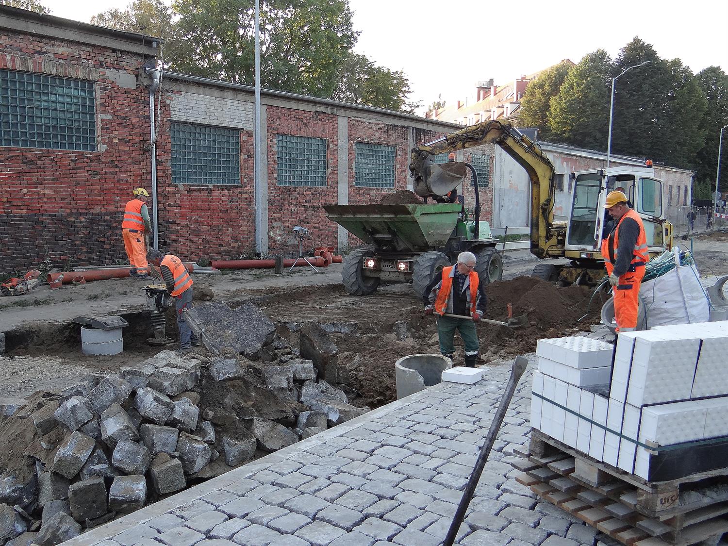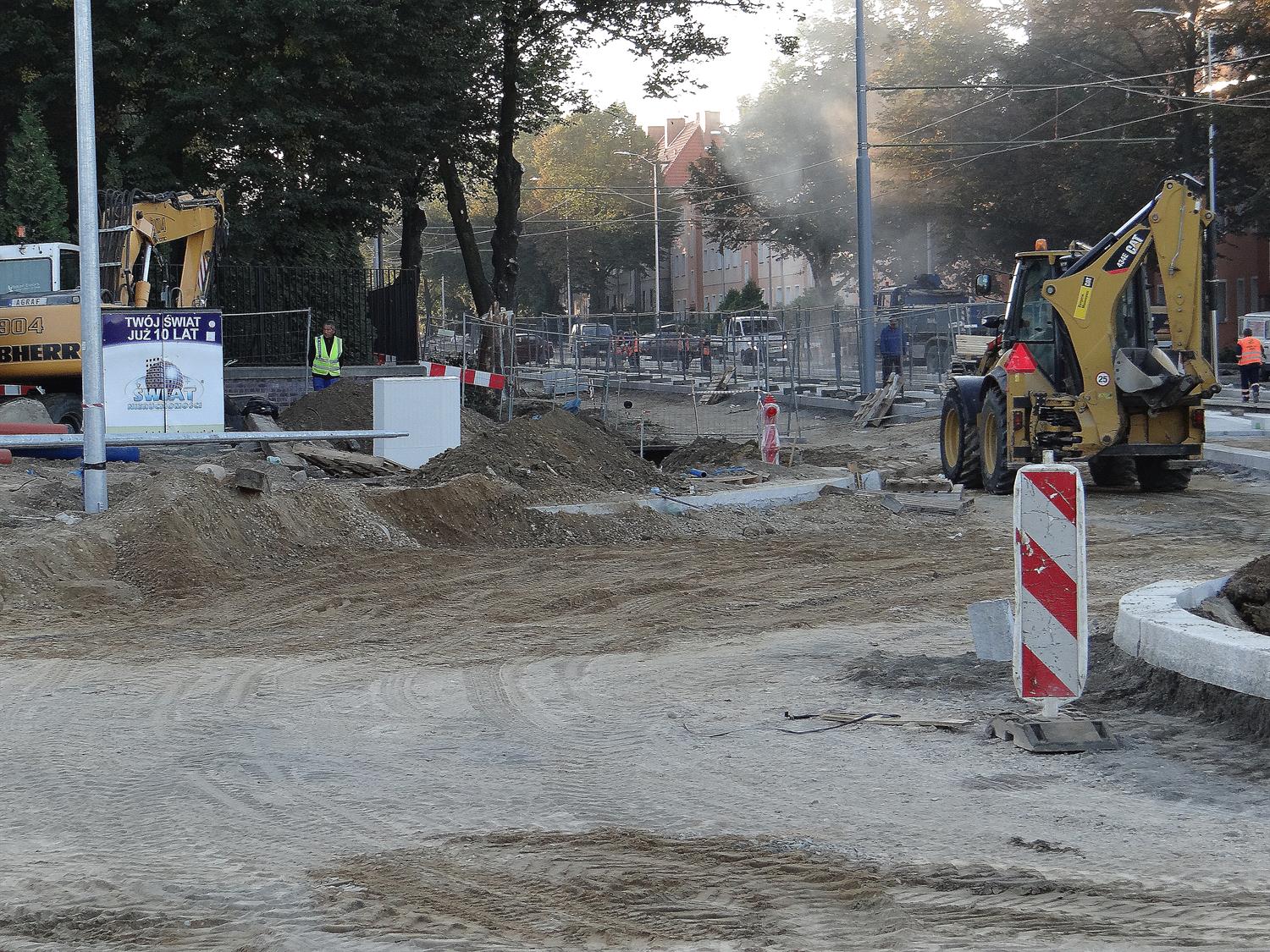 W czwartek o świcie - po wyeliminowaniu ruchu całkowicie z krzyżówki - ekipy generalnego wykonawcy krakowskiej spółki ZUE oraz firm podwykonawczych (są nimi m.in. Szczecińskie Przedsiębiorstwo Telekomunikacyjne TELGOM, KML, ZRIB i Eurovia) przystąpiły najpierw do robót rozbiórkowych pozostałych jeszcze starych fragmentów jezdni, by można było dokończyć układanie niezbędnych odcinków instalacji infrastruktury podziemnej, a następnie rozpocząć prace przy nowej podbudowie samych nitek jezdni dojazdowych i nawierzchni jezdni w obrębie samego ronda.