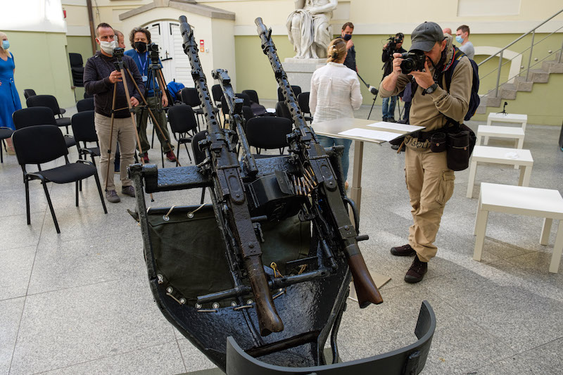 Na dziedzińcu Muzeum Narodowego w Szczecinie – Muzeum Tradycji Regionalnych przy ul. Staromłyńskiej – specjalnie na tę okazję została w poniedziałek przygotowana prezentacja cennego znaleziska. Przy okazji pokazano również łuskę naboju artyleryjskiego, kal. 280 mm, pochodzącą z niemieckiego okrętu wojennego Lutzow. Łuska także została znaleziona podczas prac na torze wodnym Szczecin-Świnoujście. ©℗