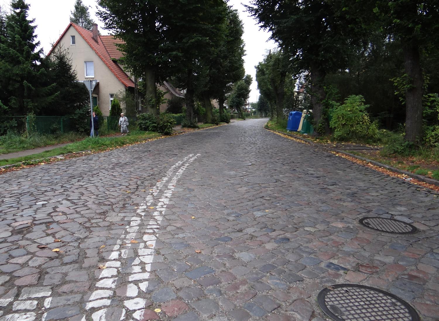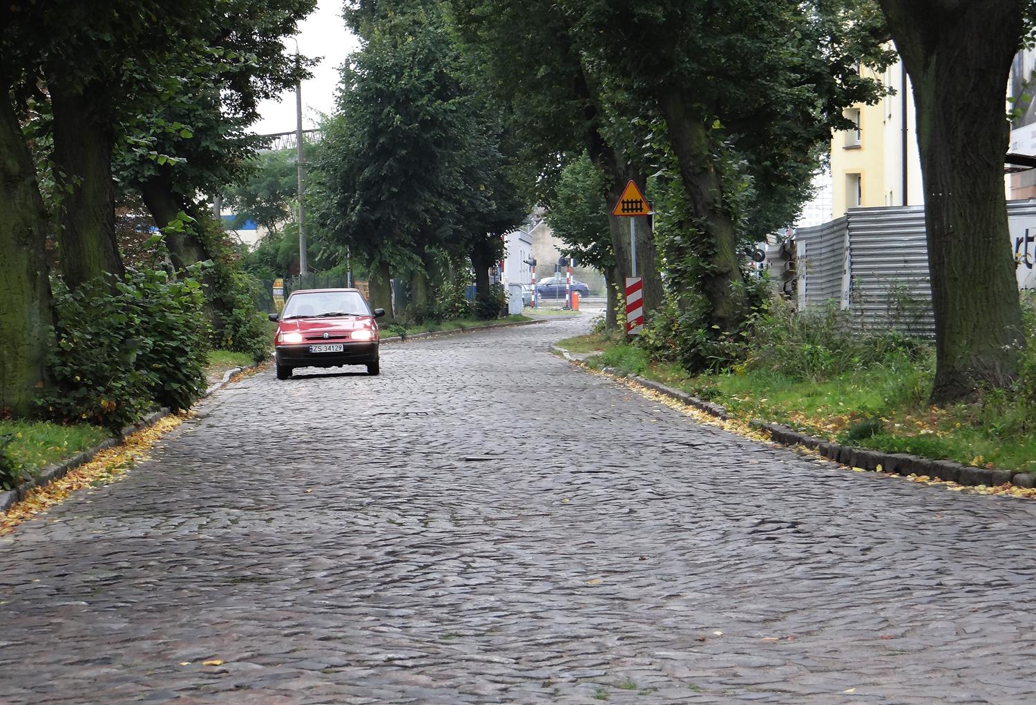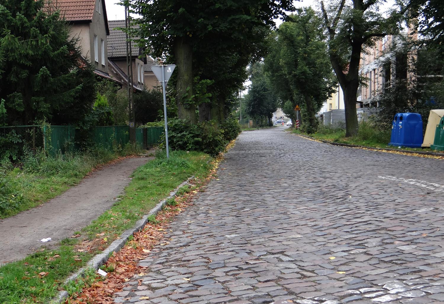 Dalej, tj. w Dąbiu, na odcinku do skrzyżowania z ul. Gryfińską, nie zmieniło się nic, czyli nawierzchnia brukowana (tzw. kocie łby) i pobocza po obu jej stronach wzdłuż posesji, które nie są chodnikami, a wydeptanymi w gruncie strefami służącymi od dziesięcioleci pieszym. W tym roku miał być zmodernizowany właśnie ten jej pozostały fragment. Zakres dalszych robót obejmowałby także przebudowę uzbrojenia, urządzenie chodników, których w tym rejonie nie ma, budowę zjazdów indywidualnych i publicznych, wprowadzenie stałej organizacji ruchu.