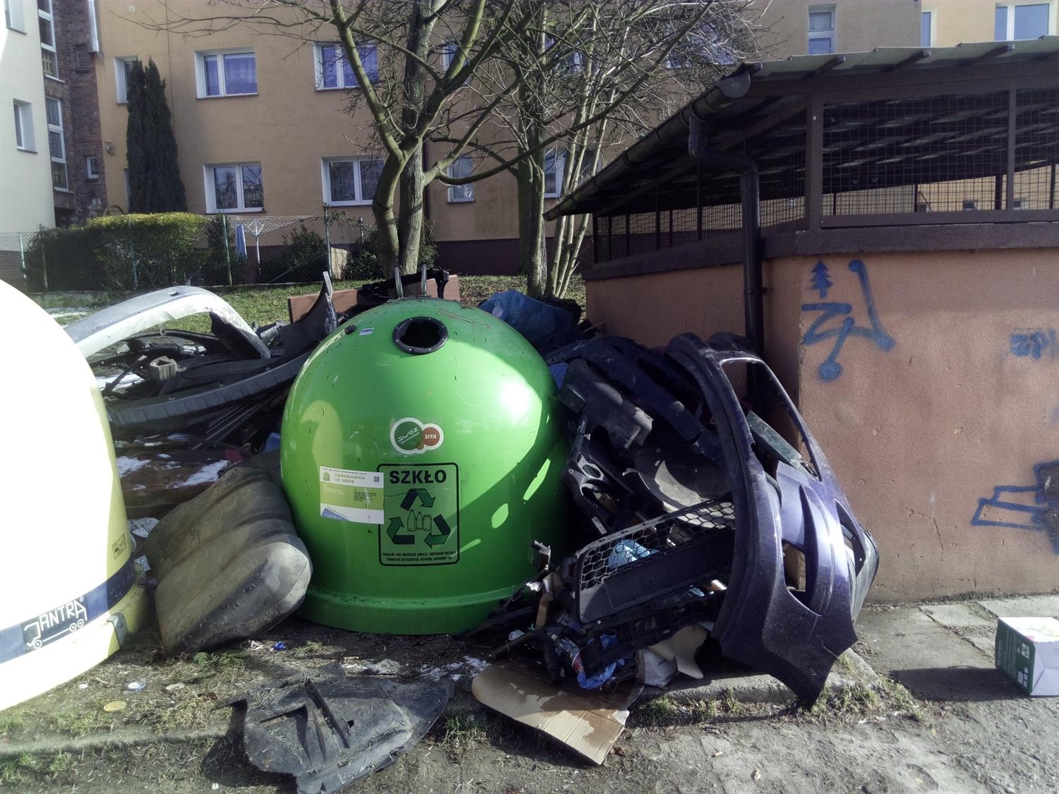Przy ul. Janickiego, niemal naprzeciwko warsztatu samochodowego, obok kontenerów na odpady były połamane zderzaki, elementy zabrudzone olejem i spora ilość innych części samochodowych. Sprawcy już nie było, szybko jednak pojawił się świadek, który nagrał film telefonem. To wystarczyło do namierzenia i odnalezienia sprawcy.