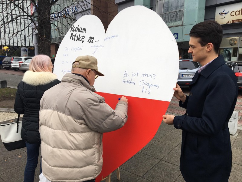 W piątek przed południem na placu Rodła przed budynkiem Pazimu w Szczecinie pojawiło się ogromne biało-czerwone serce. Młodzi Demokraci z okazji zbliżającej się setnej rocznicy odzyskania przez Polskę niepodległości zapytali mieszkańców, za co kochają nasz kraj.