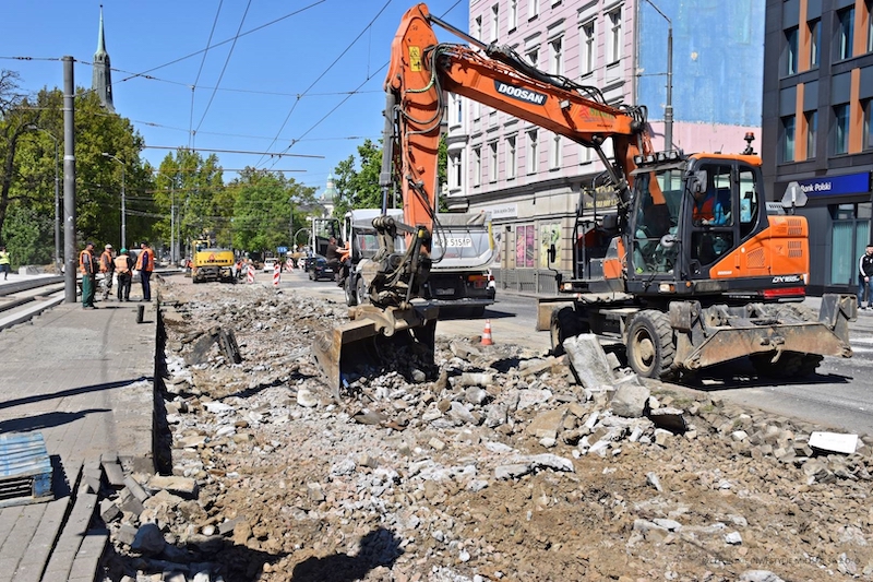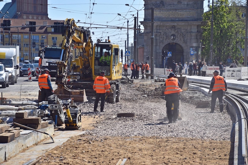 Największy zakres prac dotyczy przebudowy torowiska tramwajowego. Prowadzone są rozbiórki starej infrastruktury i jednocześnie trwa budowa nowego torowiska. W ostatnim czasie wykonywane były m.in. podbudowy z tłucznia. Pracami objęte są również instalacje teletechniczne, a w obrębie jezdni czy chodników realizowane są roboty brukarskie. Wykonawca planuje zakończyć ten etap robót do 27 maja. Do tego dnia obowiązywać będą zmiany w komunikacji miejskiej. Nadzór nad realizacją inwestycji sprawuje spółka Szczecińskie Inwestycje Miejskie.