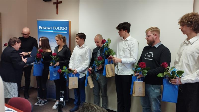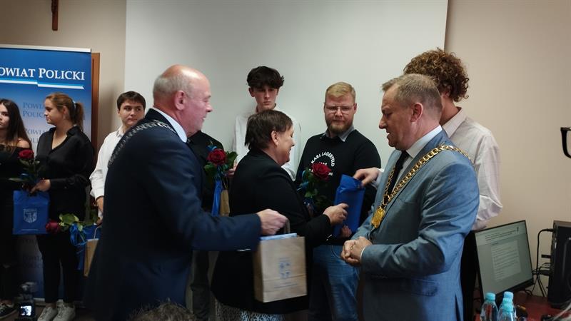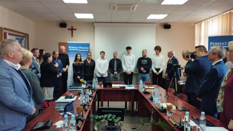 - Dziś jest siedmiu z dziesięciu wspaniałych młodych ludzi (nie wszyscy mogli być osobiście - red.), nawet nie mają jeszcze 18 lat, ale i w sercu, i w głowie mają potrzebę i naturalny odruch człowieczeństwa - mówił podczas wręczania wyróżnień starosta policki Andrzej Bednarek. - Niech te medale, które specjalnie na taki cel są przeznaczane, będą tym symbolem podziękowania, będą wyrazem głębokiego szacunku. Jestem pewien, że mój świat i moja przyszłość zależy od was. A jeśli od was, to możemy być spokojni o przyszłość naszego powiatu, naszych gmin i naszego kraju.