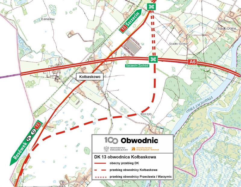DK13 łączy granice polsko-niemiecką w Rosówku z autostradą A6 i centrum Szczecina. Obwodnica Kołbaskowa w ciągu DK13 to kolejny element realizacji nowego przebiegu tej drogi.