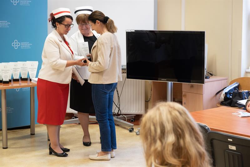 Osiemnaście pielęgniarek i położnych, które w sposób szczególny zaangażowane były w walkę z koronawirusem w szpitalu na szczecińskich Pomorzanach, otrzymało we wtorek (17 maja) pamiątkowe statuetki i podziękowania.