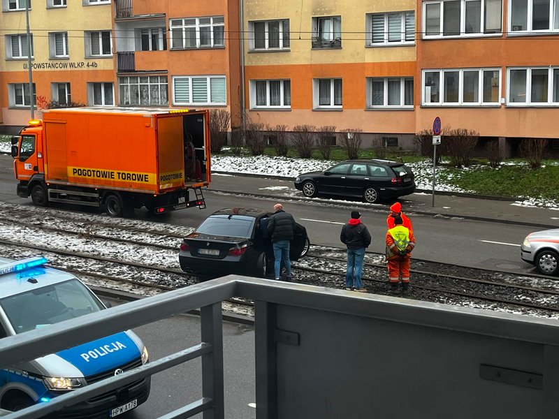 Na miejscu interweniowało pogotowie torowe i policja. Przed godz. 11 samochód został ściągnięty z torowiska i odwieziony na lawecie.