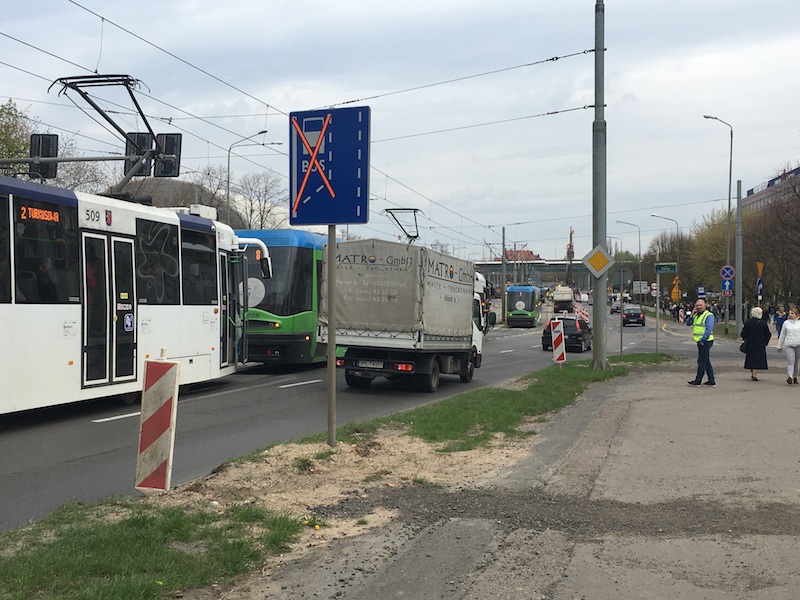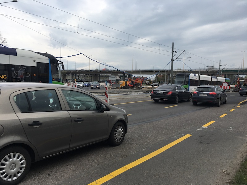 pees: Jak już portowcy dali się namówić na nie korkowanie portu swoimi samochodami (dramat z wyjazdem), to ZDiTM zapewnia im bieg z przeszkodami przez plac budowy od Wyszyńskiego (wiecie, rozumiecie: na wiszących kablach - by się powiesili wysiadając na zlikwidowanych przystanku, a tak to nie zamierzają przechodząc pod nimi) tudzież z Parnicy. Po czym po wyjściu z pracy mogą ciągnąc się z buta do najbliższych autobusów bo i tak tramwaje stoją, nie jadą albo wjeżdżają na siebie. Komu dziękować?