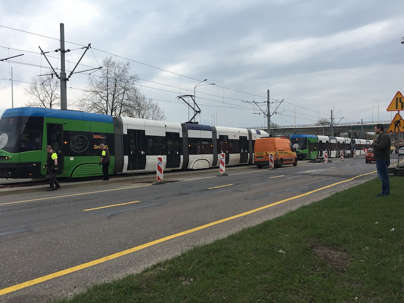 Na wahadle przy nowo powstałym rondzie Portowców po dwa jadące z naprzeciwka składy w czwartek ok. godz. 15.30 wjechały na jeden tor, prawdopodobnie z powodu awarii sygnalizatorów. Nie doszło do zderzenia, ale linia jest nieprzejezdna w obu kierunkach.