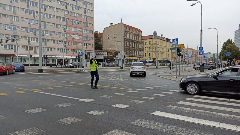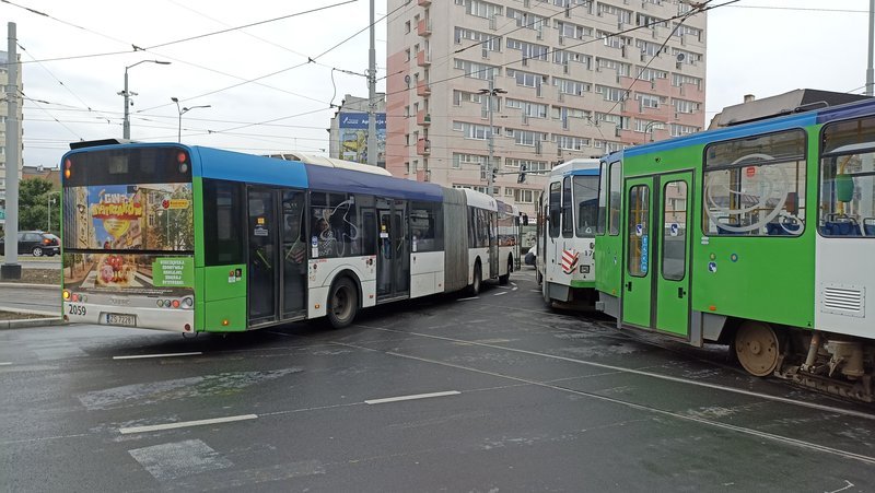 Stoją tramwaje linii nr 1 i 6. Przejazd samochodów od Bramy Portowej w kierunku pl. Rodła został zablokowany. Korki utworzyły się w całym centrum Szczecina. Stoją w nich także autobusy komunikacji miejskiej.