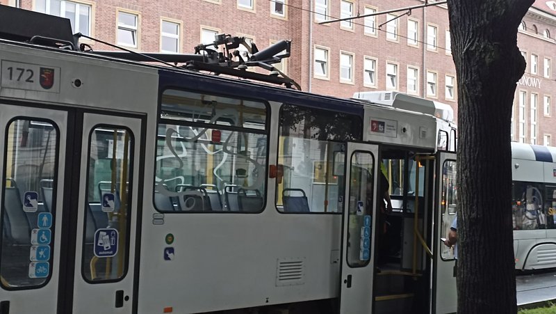 W czwartek przed godz. 16 tramwaj linii nr 12 jadący z al. Wyzwolenia w kierunku Bramy Królewskiej połamał pantograf. Części urządzenia leżą na jezdni na środku skrzyżowania.
