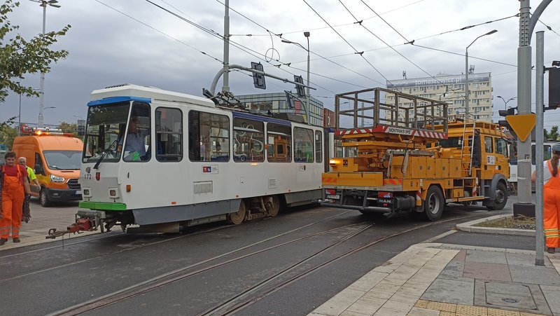 Chwilę przed godz. 16.40 specjalistyczny samochód spółki Tramwaje Szczecińskie ściągnął uszkodzony skład ze skrzyżowania. Przejazd samochodem w kierunku pl. Rodła i dalej na Niebuszewo jest już możliwy.