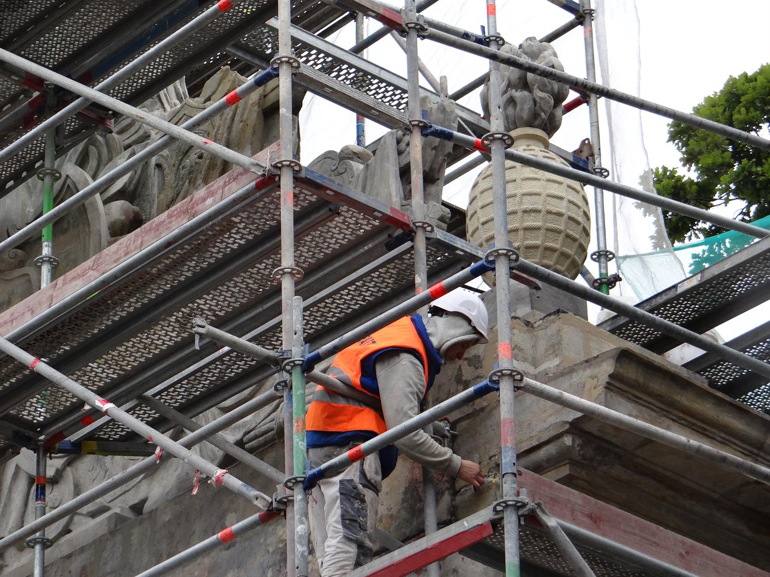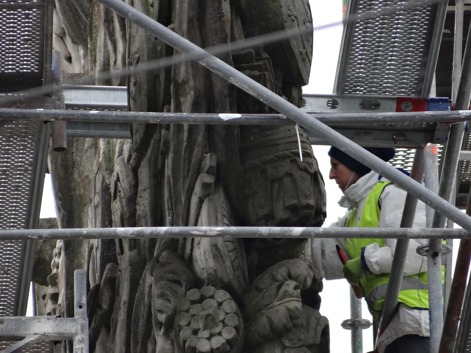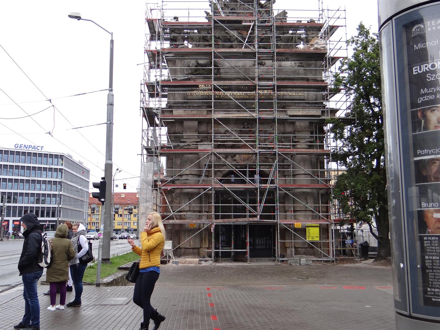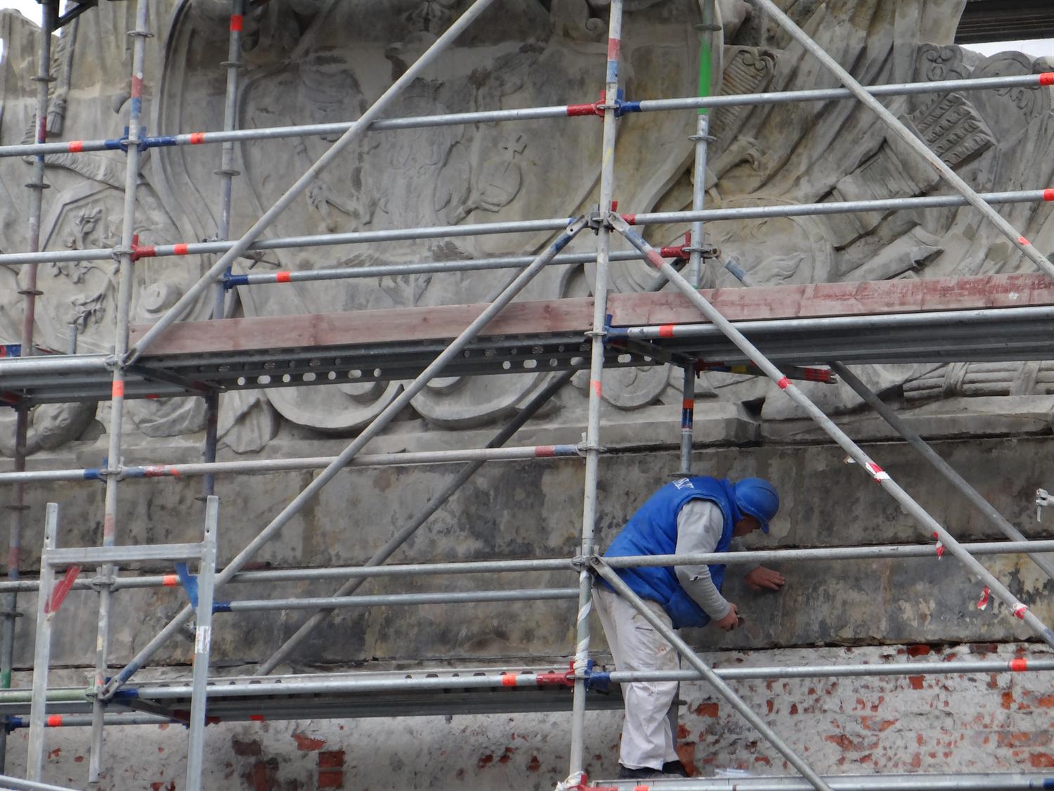 Prace rozpoczęły się od oczyszczania z zewnątrz murów budowli w części przyziemia od strony torowiska dla tramwajów. Specjaliści z firmy Konsart równocześnie prowadzą roboty przy elewacji od strony szaletu. Rozpoczęli również zabiegi przy uzupełnianiu ubytków i odnawianiu bogato dekorowanych detalami architektonicznymi obu wejść bramy.
