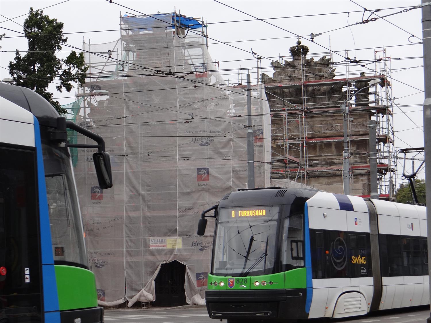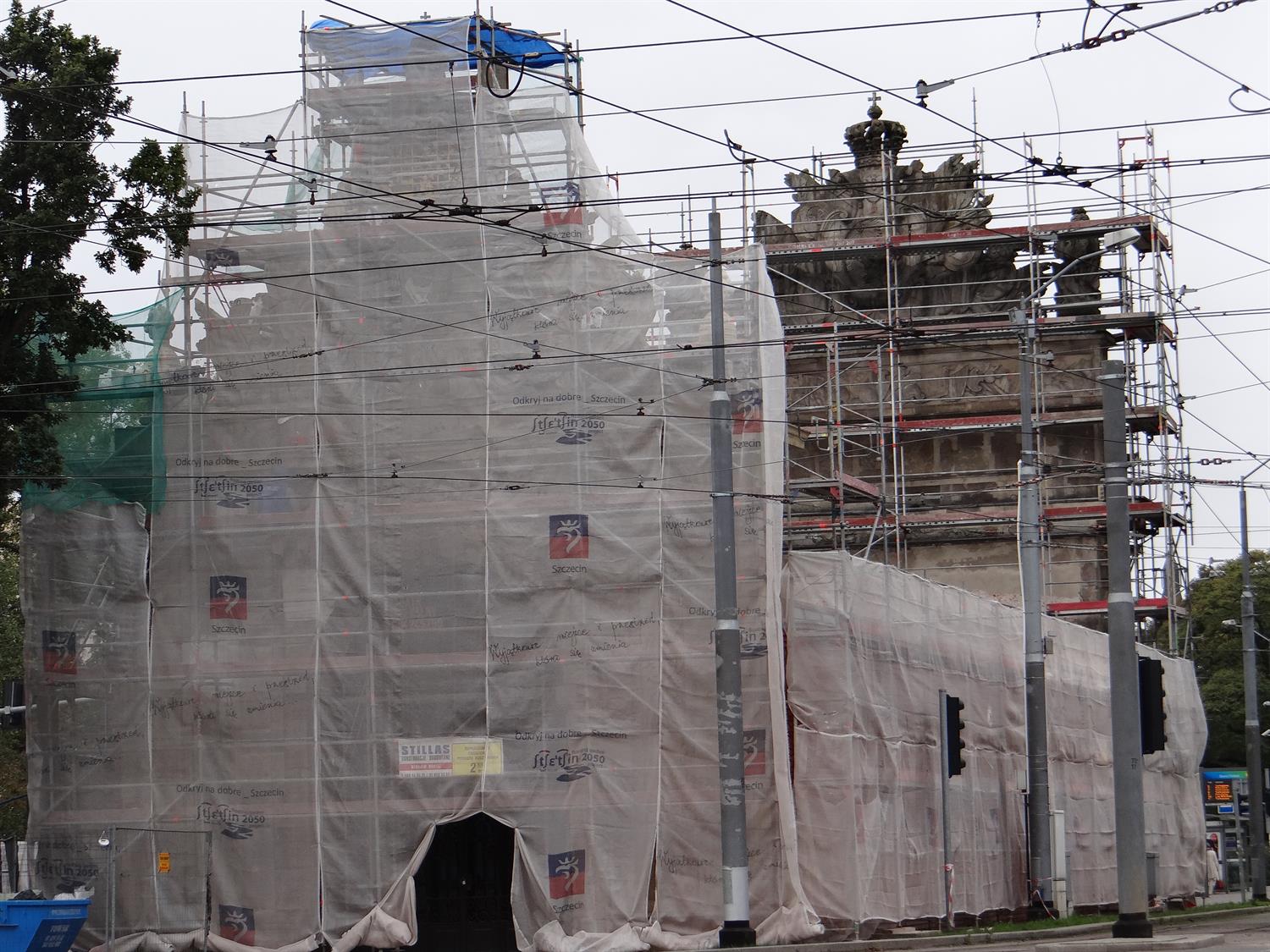 Wśród stalowych konstrukcji rusztowań i za plandekami wokół szczecińskiej Bramy Portowej, od kilku już tygodni krzątają się specjaliści od konserwacji i renowacji takich, jak ta budowli. Zabytek przechodzi właśnie długo wypatrywaną kurację.