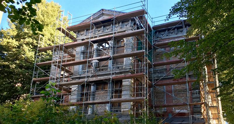 Na zdjęciu: Rozpoczęty w marcu 2018 r. pierwszy etap odbudowy zabytkowej willi przy ul. Słowackiego 3 w Szczecinie ma zakończyć się jeszcze tej jesieni.