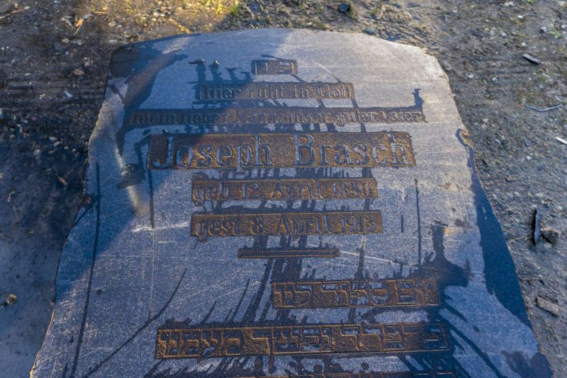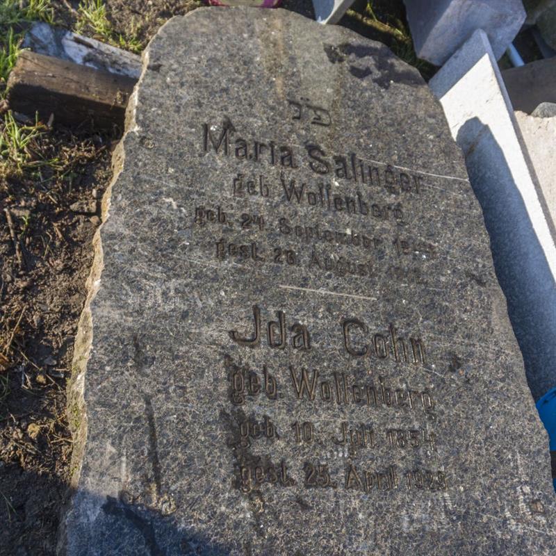 Nagrobki wykonane zostały z czarnego i czarno-zielonego granitu norweskiego. Większa macewa – licząca prawie dwa metry i ważąca około 700 kg – znajdowała się na grobie Josepha Brascha (1840-1913). Druga – mierząca ponad 160 cm i ważąca około 450 kg – położona była na grobie Marii Salinger z domu Wollenberg (1844-1916) i Idy Cohn z domu Wollenberg (1854-1929).