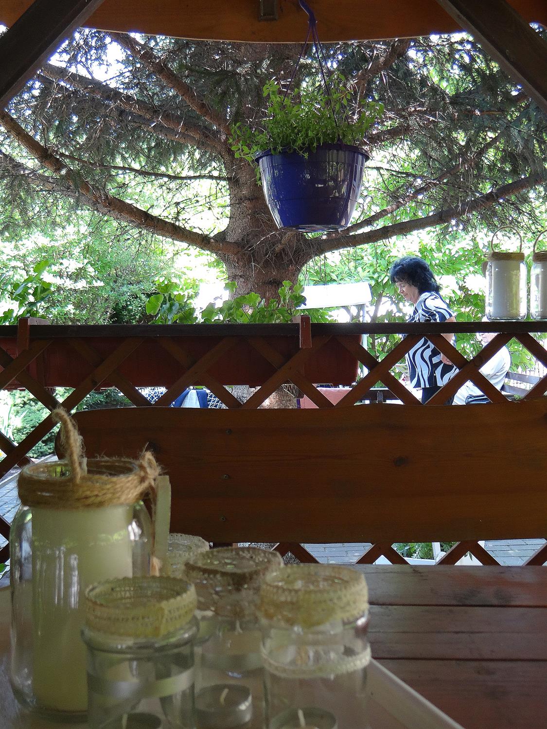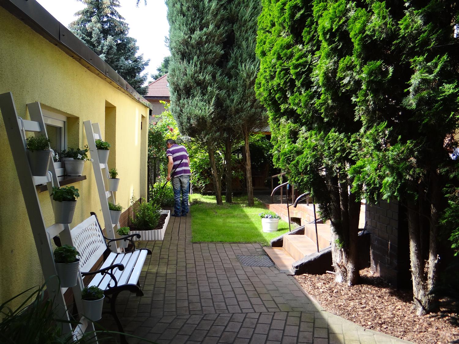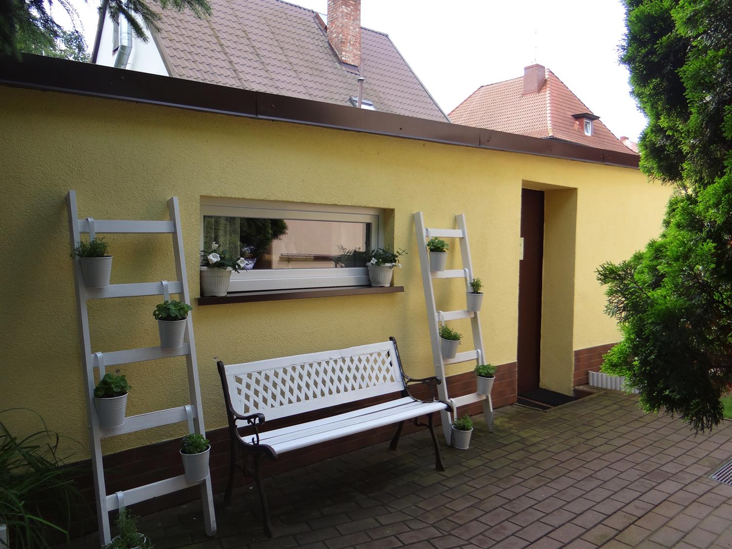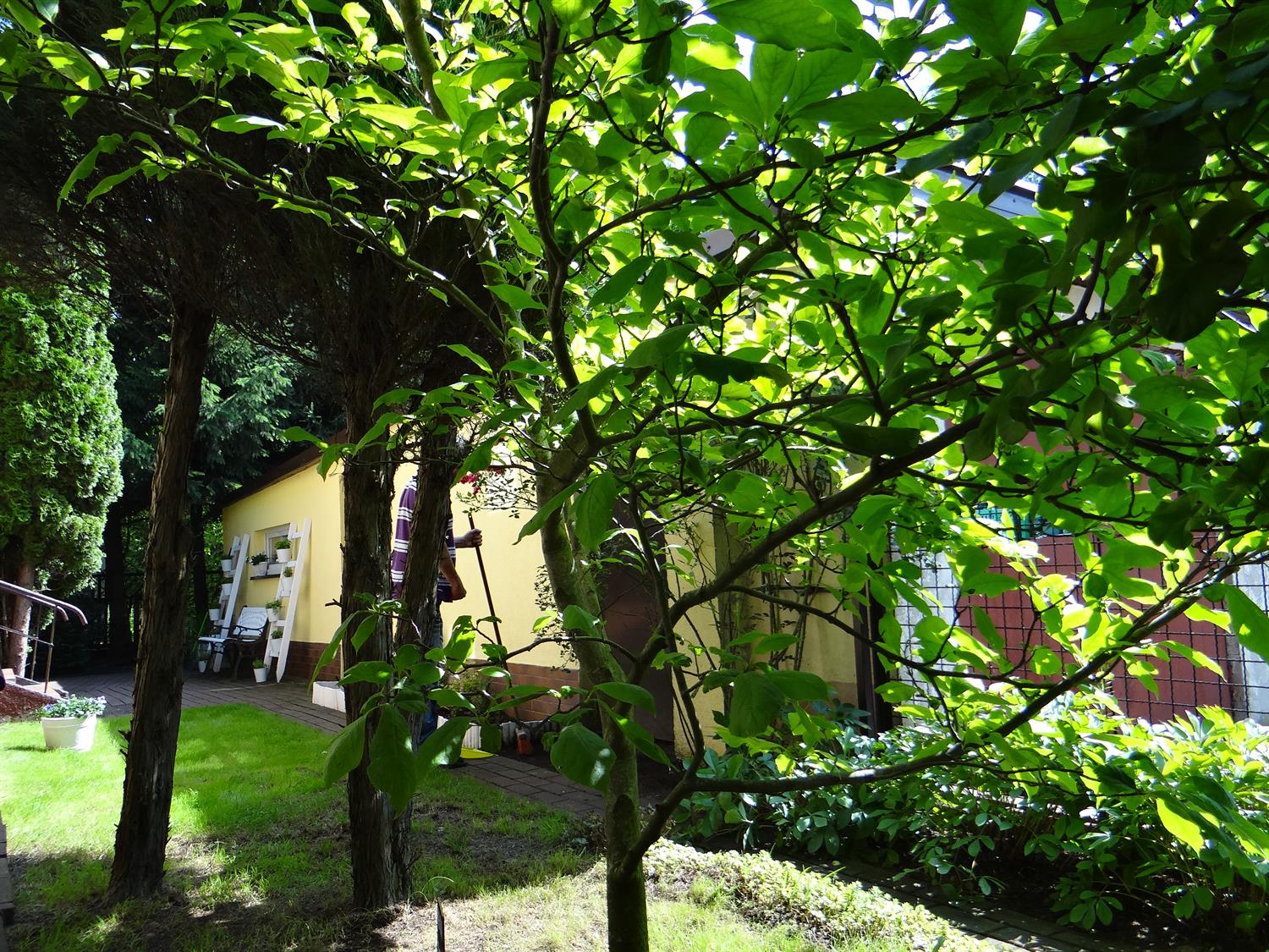 Teren wkoło budynku choć niewielki, to jednak można na nim – jak się okazuje – wyczarować sporo. Świerki, tuje, cyprysy i cisy systematycznie pielęgnowane cieszą oczy 45 podopiecznych placówki, osób starszych. Podobnie, jak rosnące w ogrodzie okazałe magnolie. A w upalne dni dają w swym cieniu chwile odpoczynku na bujanej kanapie, ławeczkach, przy stolikach i drewnianej altanie, którą oplata i porasta pięknie kwitnący milim amerykański. W samej altanie ozdoby wykonane rękoma pensjonariuszy. Tu mogą aktywnie spędzać czas, rozmawiać, brać udział w organizowanych dla nich zajęciach, czytać, śpiewać, grać, a jeśli chcą i pracować w zielonej enklawie, doglądając i pielęgnując posadzone przez siebie kwiaty, krzewy, zioła.