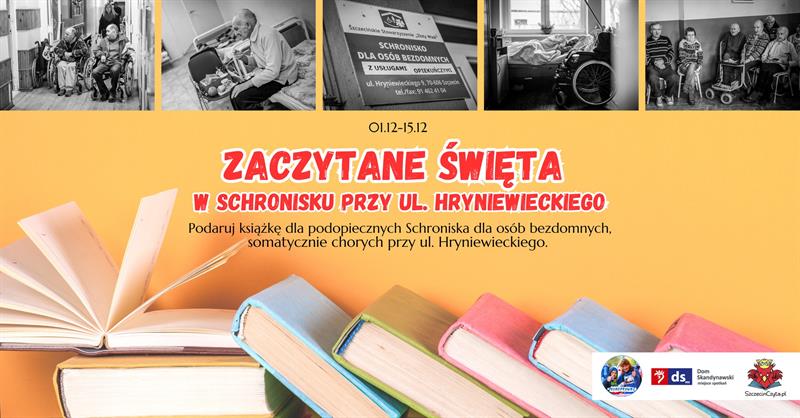 „Zaczytane Święta” to akcja charytatywna, której celem jest zebranie książek dla mieszkańców Schroniska dla osób bezdomnych somatycznie chorych przy ulicy Hryniewieckiego w Szczecinie. Inicjatorką wydarzenia jest Anna Szewczyk, społeczniczka działająca na rzecz osób wykluczonych, a pomagają jej w tym portal Szczecin Czyta i Dom Skandynawski.