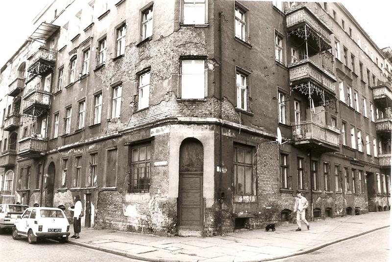 Po trwających niezbyt długo poszukiwaniach udało nam się ustalić, że widoczna na czarno-białym zdjęciu kamienica stoi faktycznie w śródmieściu i jest to narożnik ulic Władysława Jagiełły oraz Księżnej Przybysławy. Budynek niczym specjalnym nie wyróżniał się na tle wielu jemu podobnych.