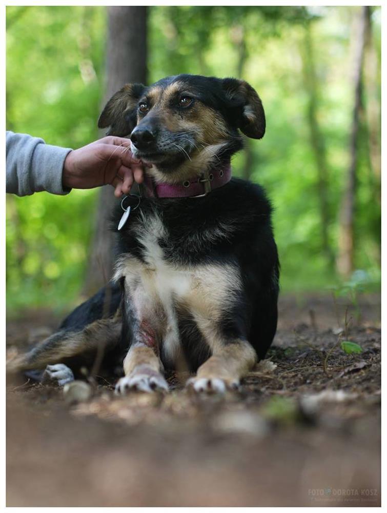 Loni to psiak po przejściach. Był niemal dziki, gdy znaleziono go błąkającego się w lesie. Wychudzonego, poranionego, przerażonego. Nie znał dobrego dotyku człowieka. Ani spacerów z nim, nawet smyczy. Sporo - bo niemal dwa lata - pracy i cierpliwości wolontariuszki Marty trzeba było, aby znów zaufał człowiekowi.