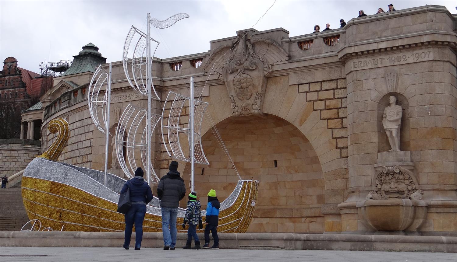 Do stworzenia tej podświetlanej instalacji – jak informuje Elżbieta Darol-Matuszewska, rzecznik prasowy spółki Enea Oświetlenie – wykorzystanych zostało około 17,5 tysiąca lampek LED. Atrapa okrętu jest długa na 10 metrów i wysoka na 3 metry. Kosztowała 147 tys. zł.