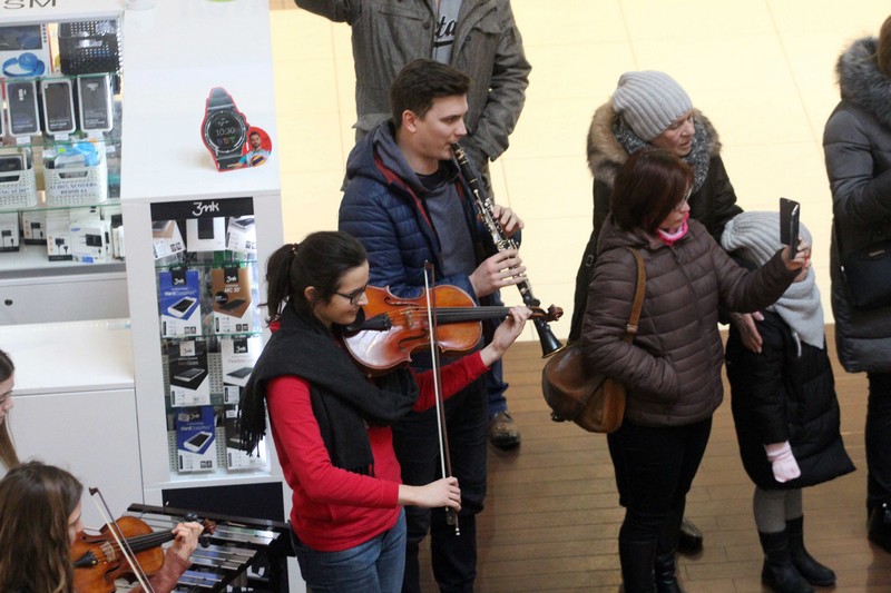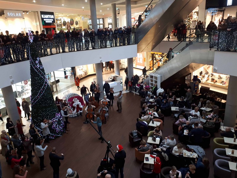 Najpierw flecistka chodziła obok sklepów grając melodię. Wkrótce dołączyli kolejni muzycy. Piękne dźwięki wypełniły galerię. Wydarzenie rejestrowało wiele kamer. Wkrótce zmontowany zostanie film, w którym bohaterami oprócz muzyków będą wszyscy ci, którzy mieli szczęście przebywać w tym czasie w galerii.