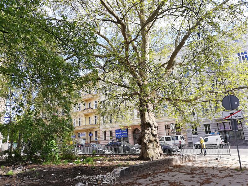 To może tłumaczyć, dlaczego od pięciu miesięcy nawet pomnikowy platan (patrz zdjęcie) nie został zabezpieczony przed uszkodzeniem ciężkim sprzętem budowlanym.