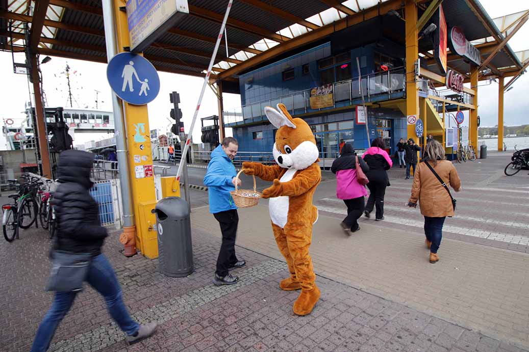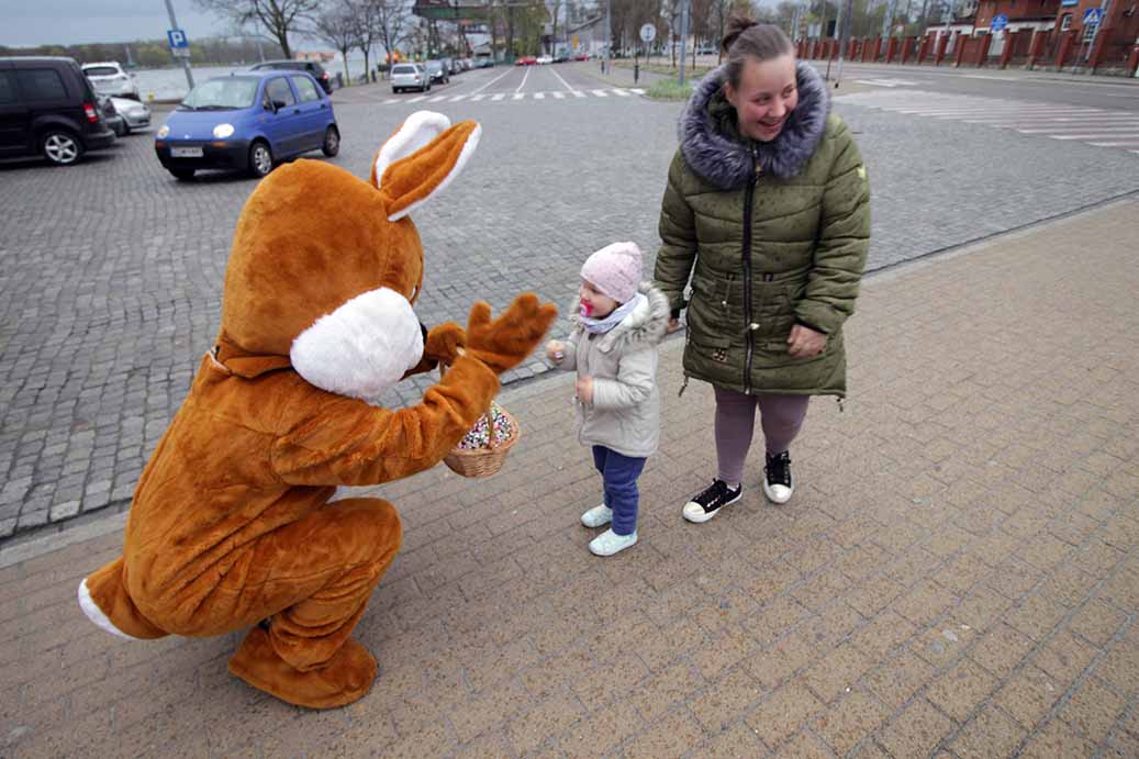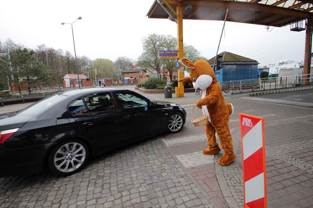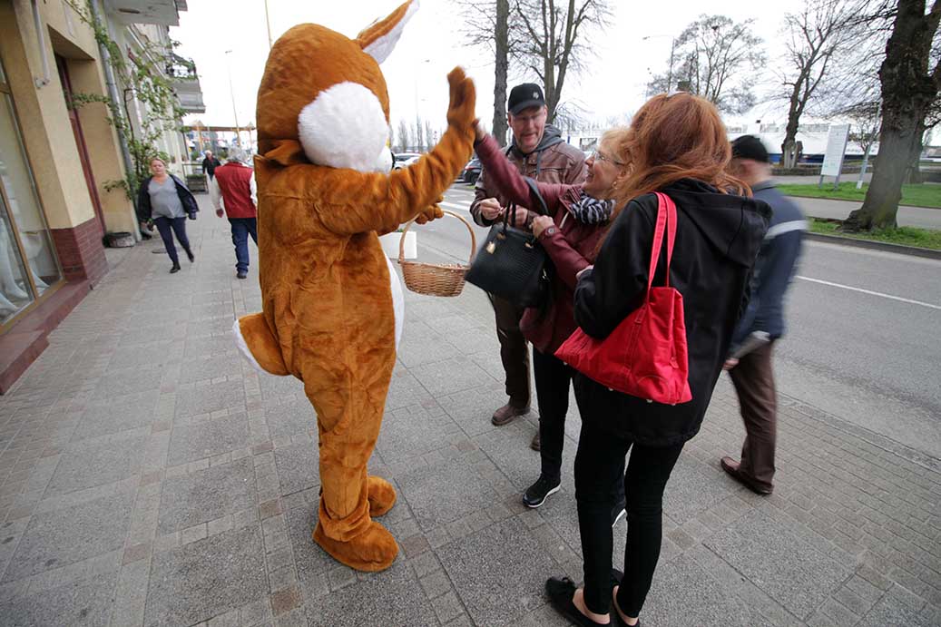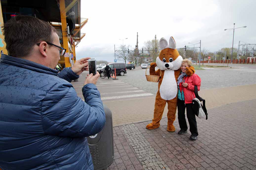 Zając Wielkanocny jest już w Świnoujściu! Przejął sterowanie nad Bielikiem, kierował ruchem i rozdawał słodycze. Każdy chciał mieć selfie z sympatycznym futrzakiem. Zając zachęcał do przyjścia na promenadę w najbliższą niedzielę. O g. 12 rozpoczną się tam konkursy i zabawy organizowane przez Świnoujską Organizację Turystyczną.