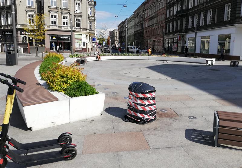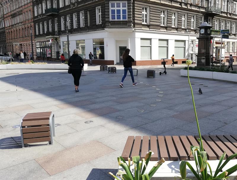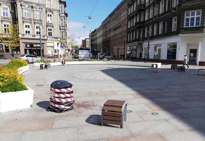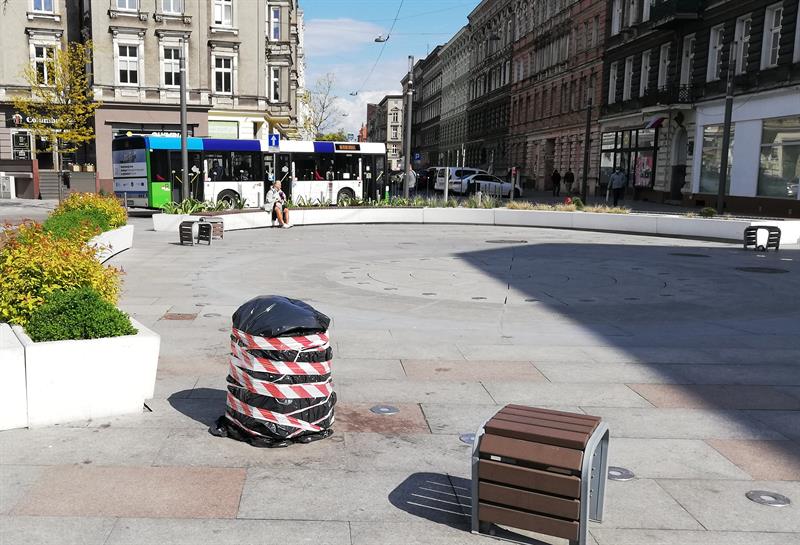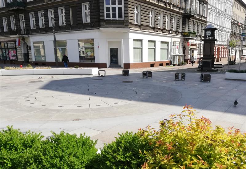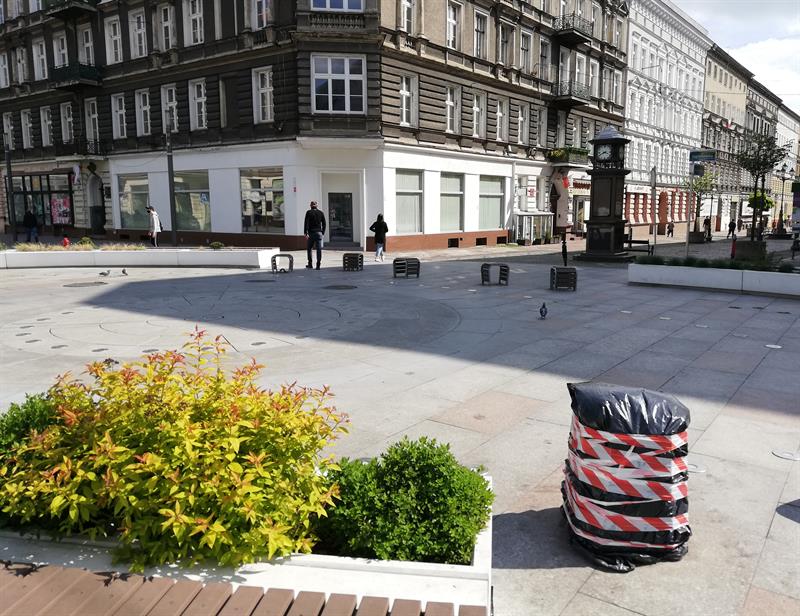 Na zdjęciu: Zgodnie z zaleceniem Głównego Inspektora Sanitarnego, fontanna typu „dry plaza” na pl. Zamenhofa - podobnie jak pozostałe szczecińskie wodotryski - pozostanie nieczynna aż do odwołania stanu epidemii w naszym kraju.