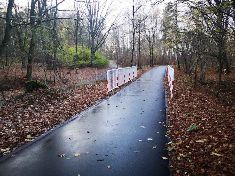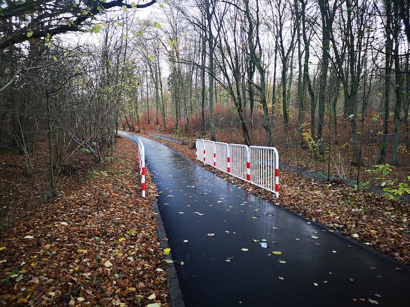 W środku lasu barierki. Bareja tego by lepiej nie wymyślił. Brawo dla projektanta. One stwarzają zagrożenie!!! Nie daj Boże jakiś rowerzysta na nie wpadnie.