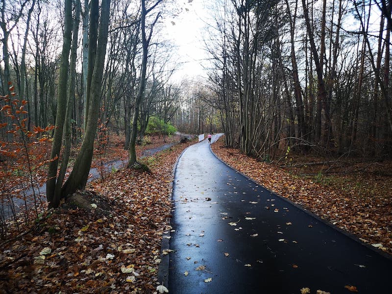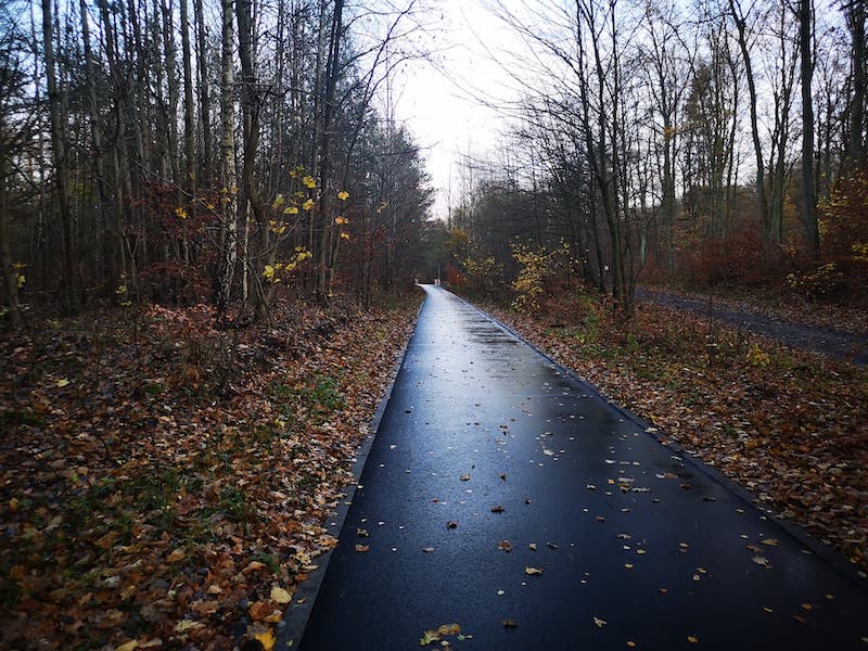 ścieżka rowerowa , na której mnóstwo osób na rolkach i pieszych z kijkami .A potem wina rowerzysty bo potrącił