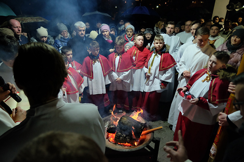 W wielu kościołach w Polsce zakończyła się liturgia Wigilii Paschalnej - najważniejszej części Triduum Paschalnego. W trakcie mszy, która zawsze odbywa się po zapadnięciu zmroku poświęcono ogień będący symbolem światła zmartwychwstałego Chrystusa.