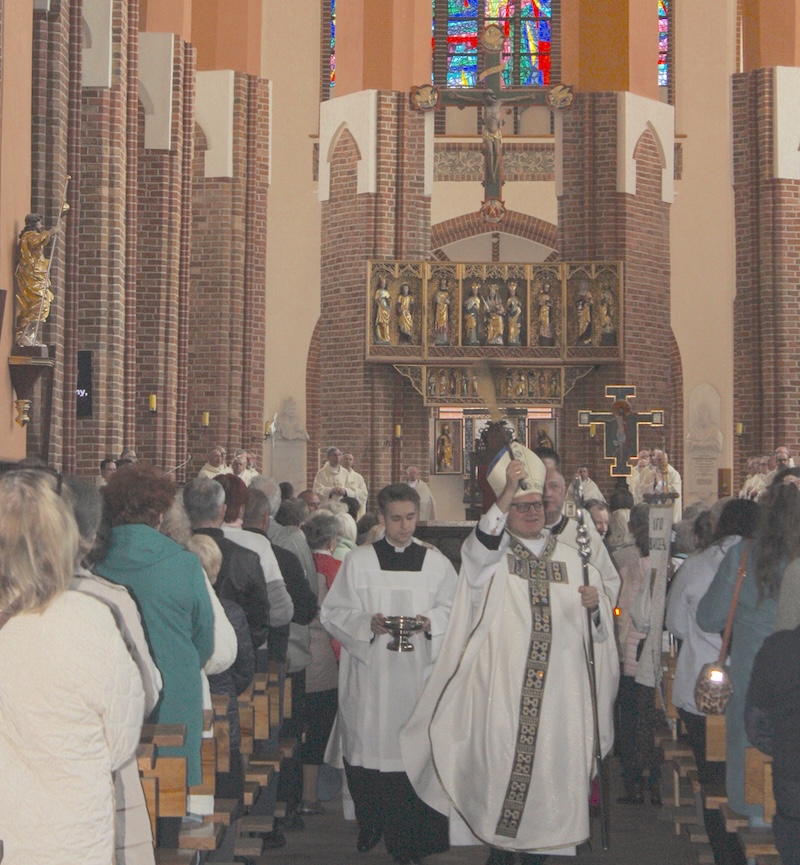 Szczególnym akcentem tej Mszy Św. było poświęcenie ołtarza katedralnego, głównego miejsca, na którym uobecnia się ofiara krzyżowa Chrystusa. Ten ołtarz w bazylice stanowi też element naszej historii, jak zostało podkreślone, którą również my tworzymy. Poniedziałkowa uroczystość przypadła akurat w dniu poświęconym NMP Matce Kościoła, głównej patronki archidiecezji szczecińsko - kamieńskiej. To również Dzień Jedności Wspólnot, których członkowie wyruszą na ulice Szczecina ze swoją misją ewangelizacyjną.
