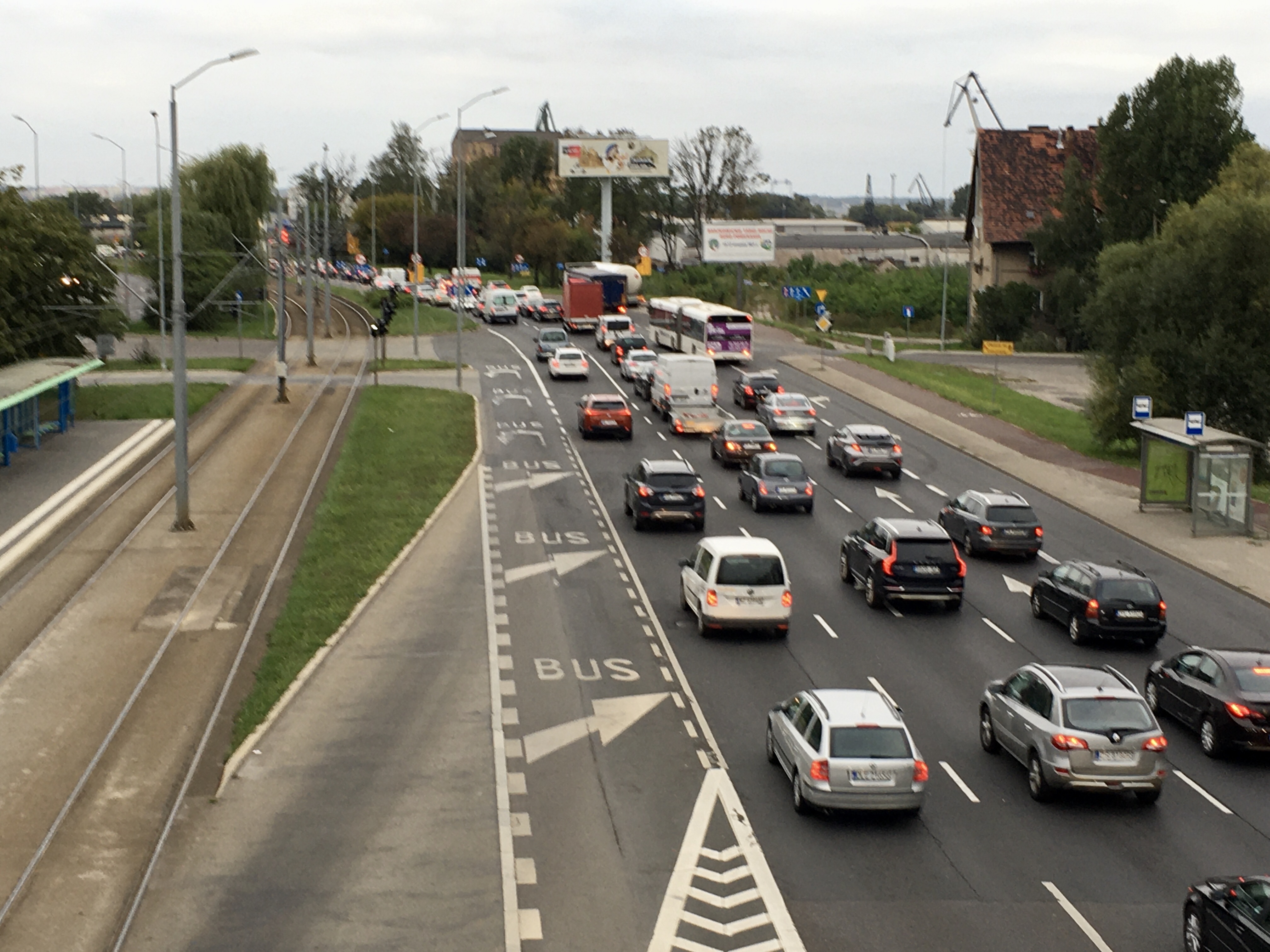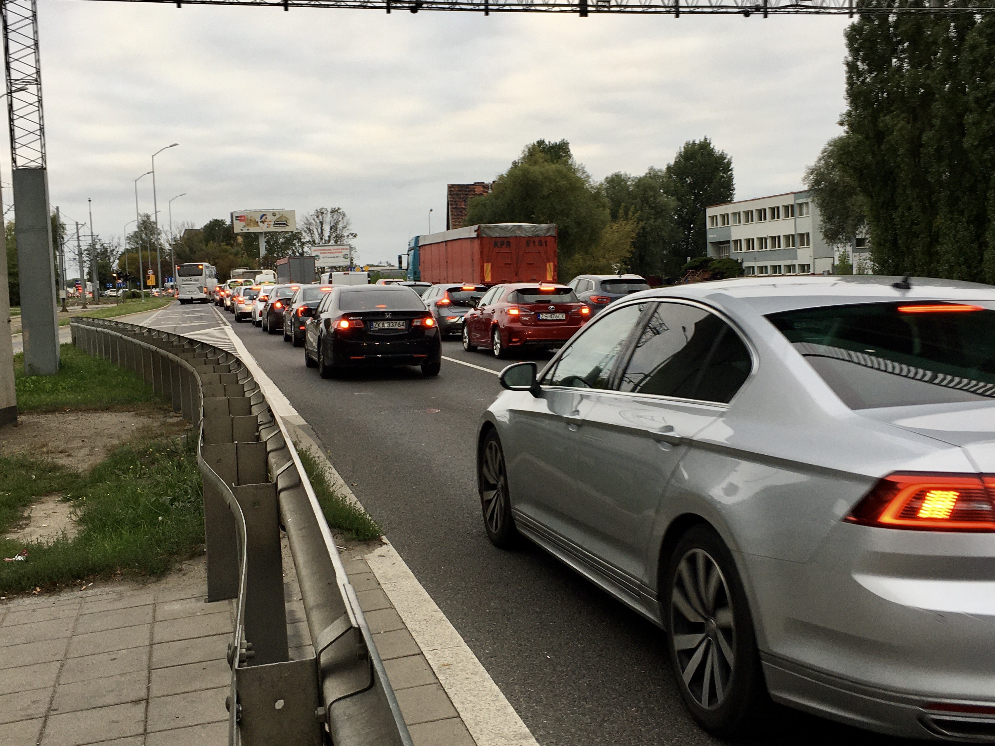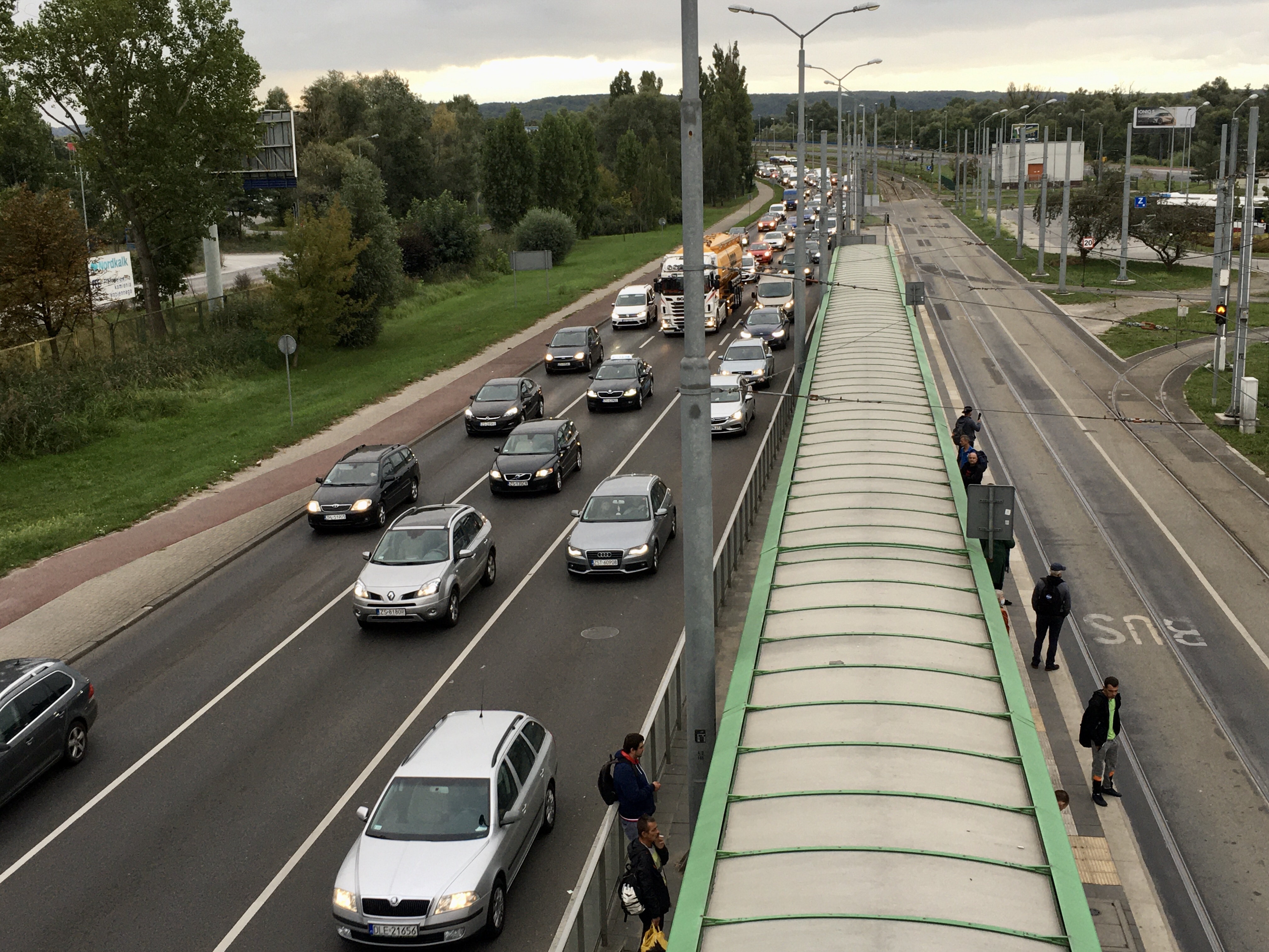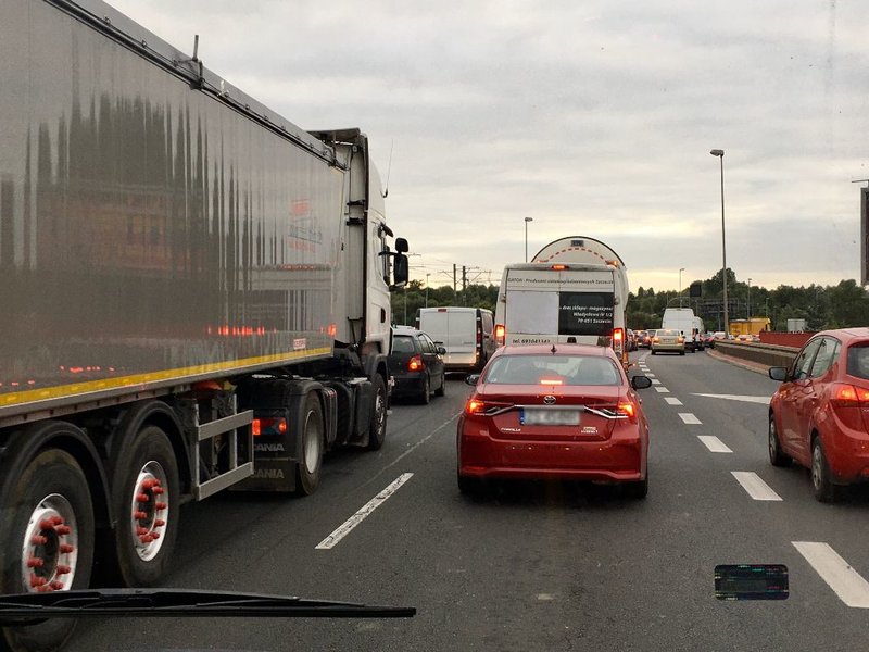 Tak samo jest na części linii zwykłych kursujących do Basenu Górniczego, w tym 56, 72 powyżej 30 minut, 73 i 93 do 40 minut, a na linii 96 od 14 do 37 minut. Powód? Jak od dłuższego już czasu ten sam: zwężenia jezdni na ul. Gdańskiej i będącej jej częścią przebudowywanej Estakady Pomorskiej. I sznury aut w obu kierunkach.Korki w stronę centrum sięgają mostu Cłowego ( od Dąbia) i mostu Pionierów ( od Zdrojów).