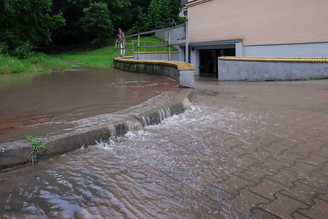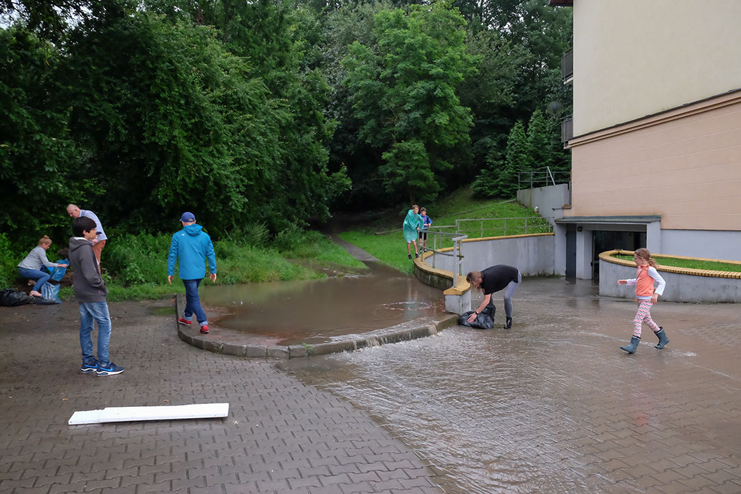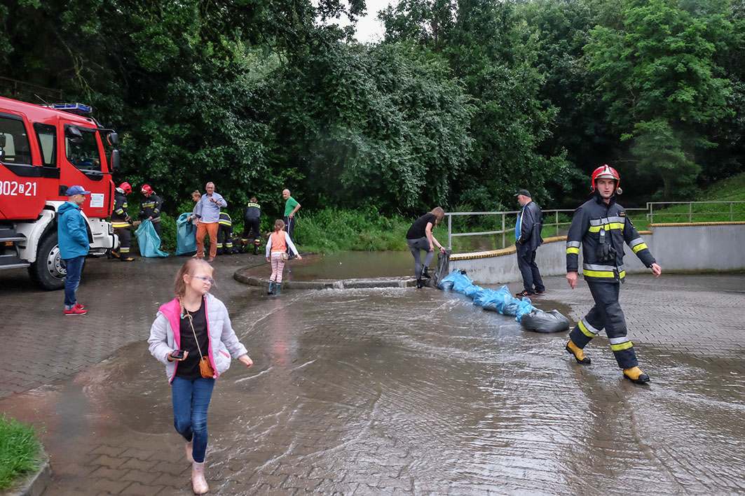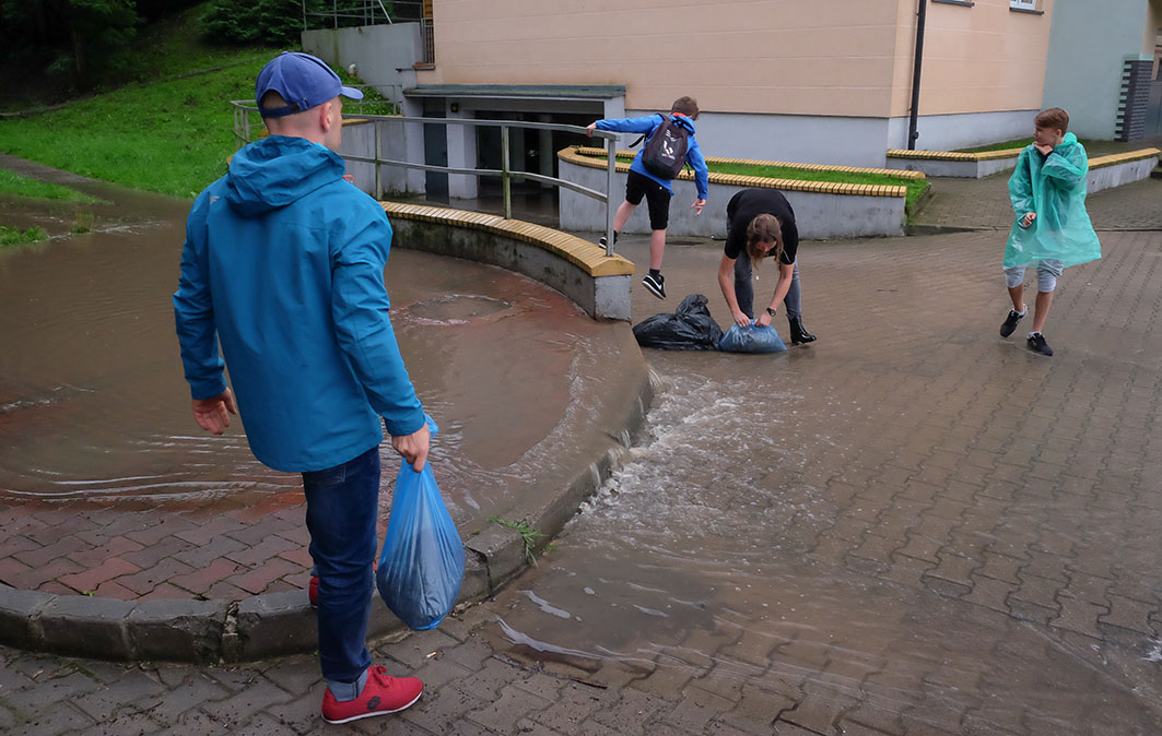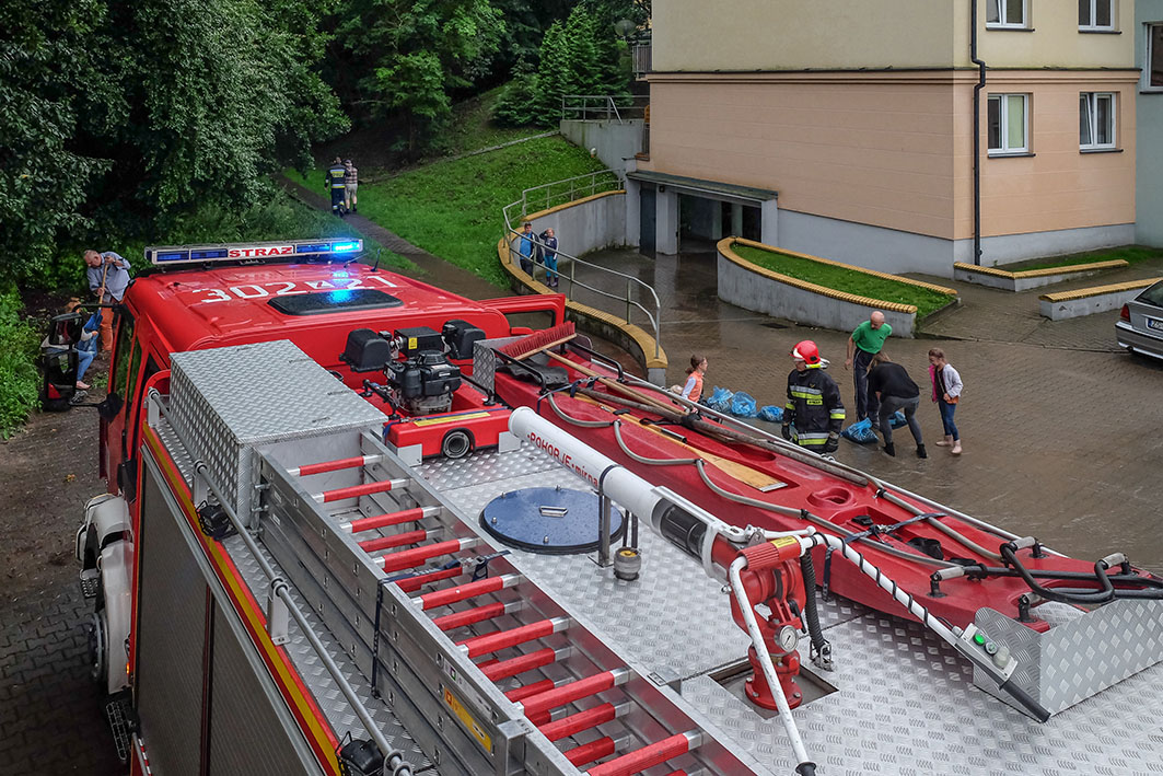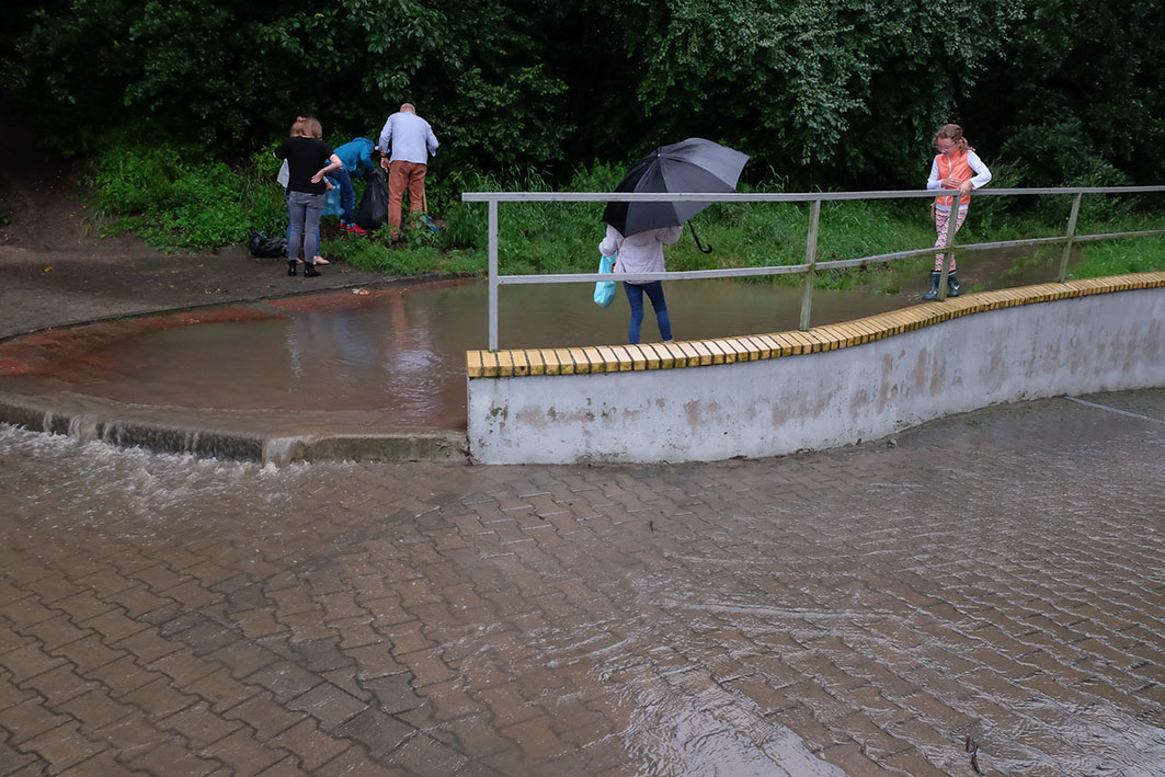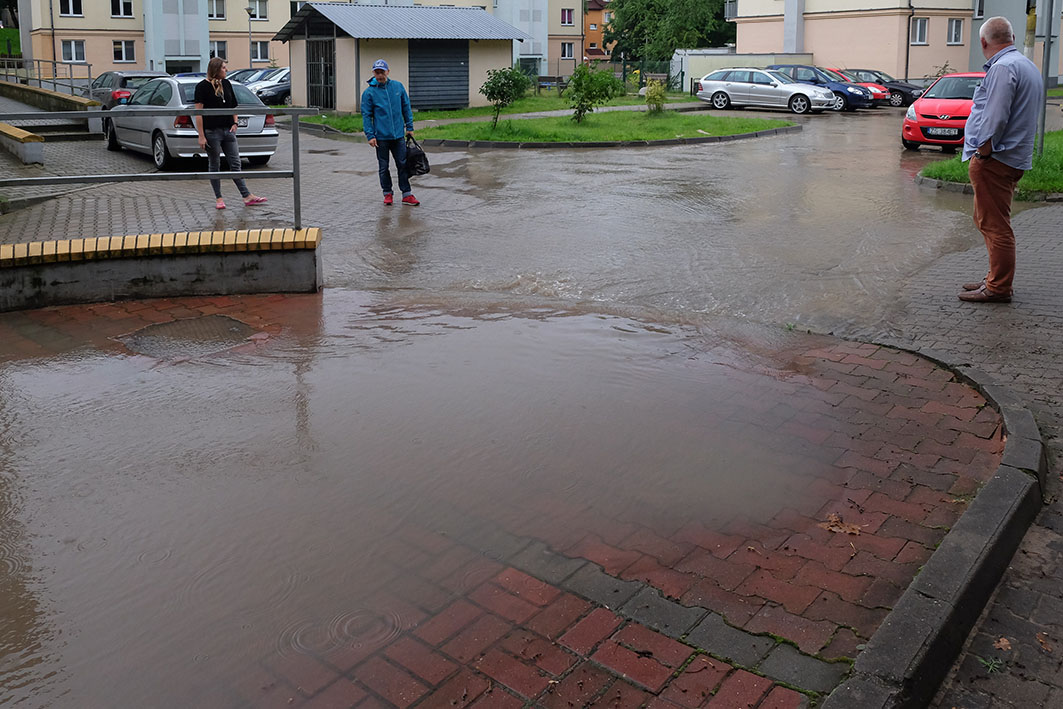 Skutki wtorkowej (25 lipca) ulewy dotkliwie odczuli mieszkańcy osiedla położonego przy ulicy Mariana Falskiego w szczecińskich Podjuchach. Z relacji poszkodowanych wynika, że zanieczyszczony śmieciami rów melioracyjny nie nadążał z odprowadzeniem wody. Intensywne opady deszczu jakie nawiedziły Szczecin spowodowany, że woda wylała się z rowu i zalała podziemne garaże. Na miejscu interweniowała straż pożarna, która zajęła się wypompowywaniem wody i ograniczaniem strat.