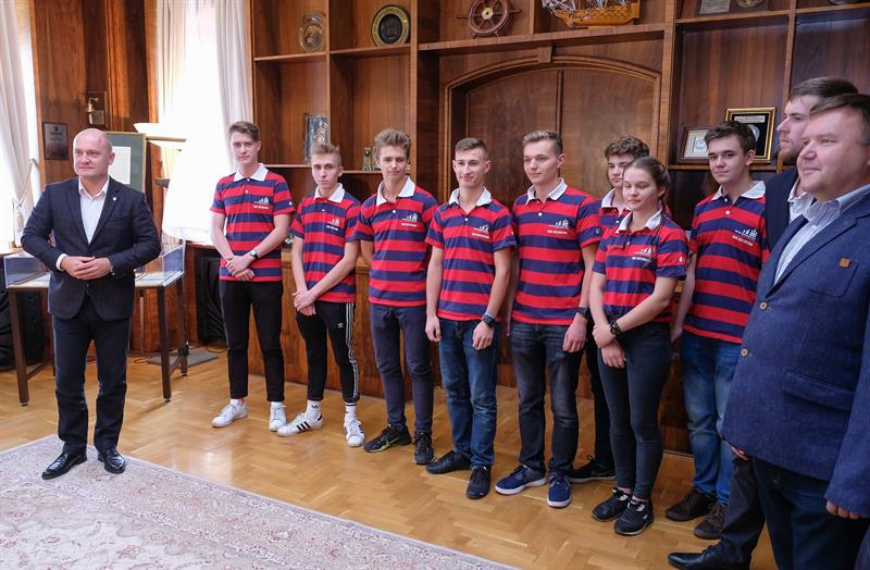 Prezydent Piotr Krzystek pogratulował w piątek ekipie "Daru Szczecina", która latem zwyciężyła w klasie C tegorocznych regat The Tall Ships Races. Młodzi adepci żeglarstwa nie kryli dumy i szczęścia z wygranej.